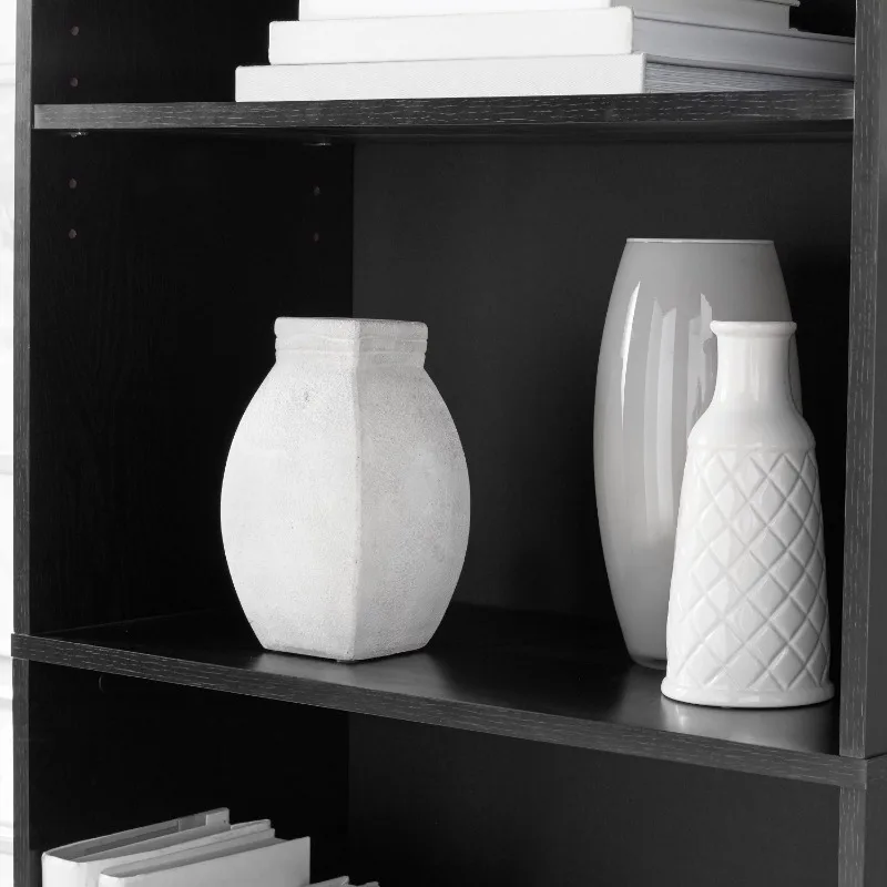 - Traditional 5-shelf bookcase with 3 adjustable shelves and 2 fixed shelves