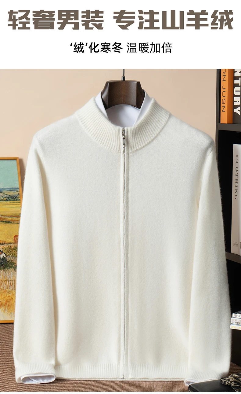 500g 100% Pure Cashmere Sweater Men's Seven-Needle Double-Ply Thickened Half-Turtle Neck Zipper Cardigan Loose Knitted Sweater