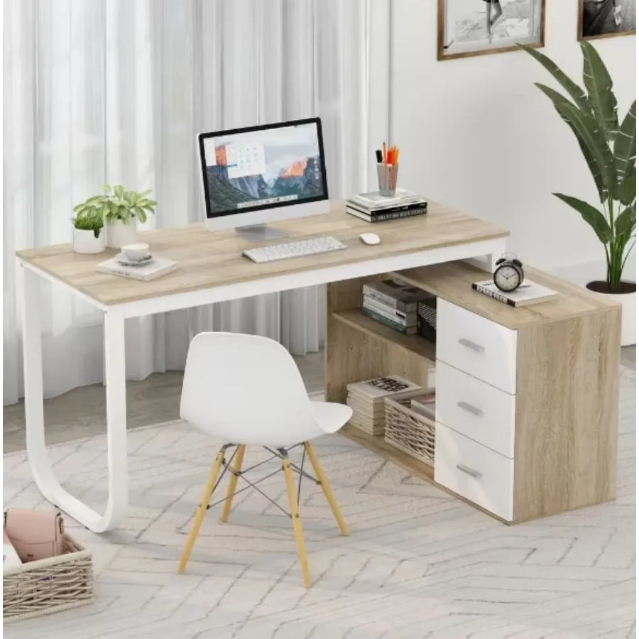 55.1 in. L Shaped Oak and White Wood with 3-Drawer Computer Desk Writing Desk Study Table Home Office,easy to assemble