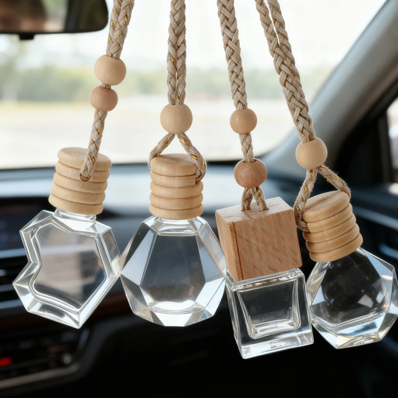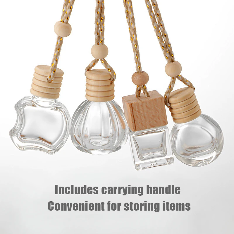 5PCS 8-12ml Empty Clear Glass Car Perfume Bottle Auto Air Freshener Car Decoration Pendant Essential Oil Diffuser Container