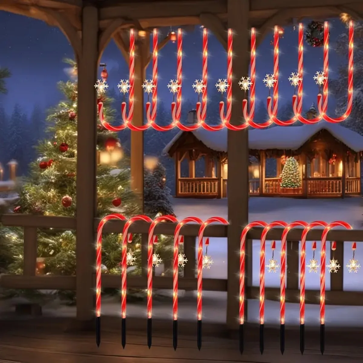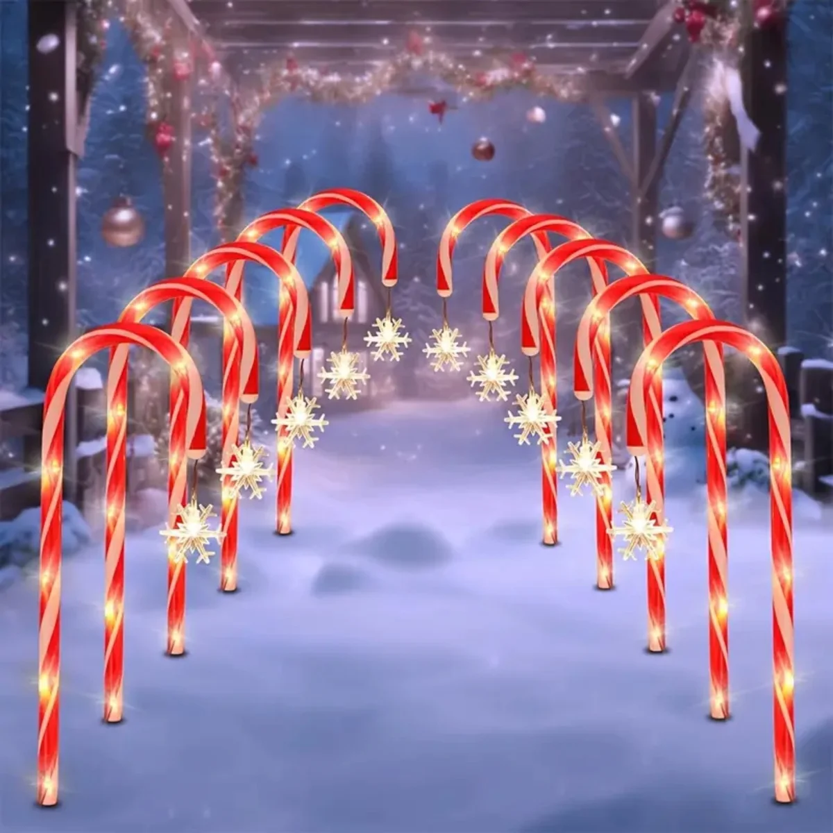 5PCS/Set Solar Snowflake Cane Light Outdoor Waterproof Candy Ground Light Garden Landscape Christmas Decoration Lawn Light