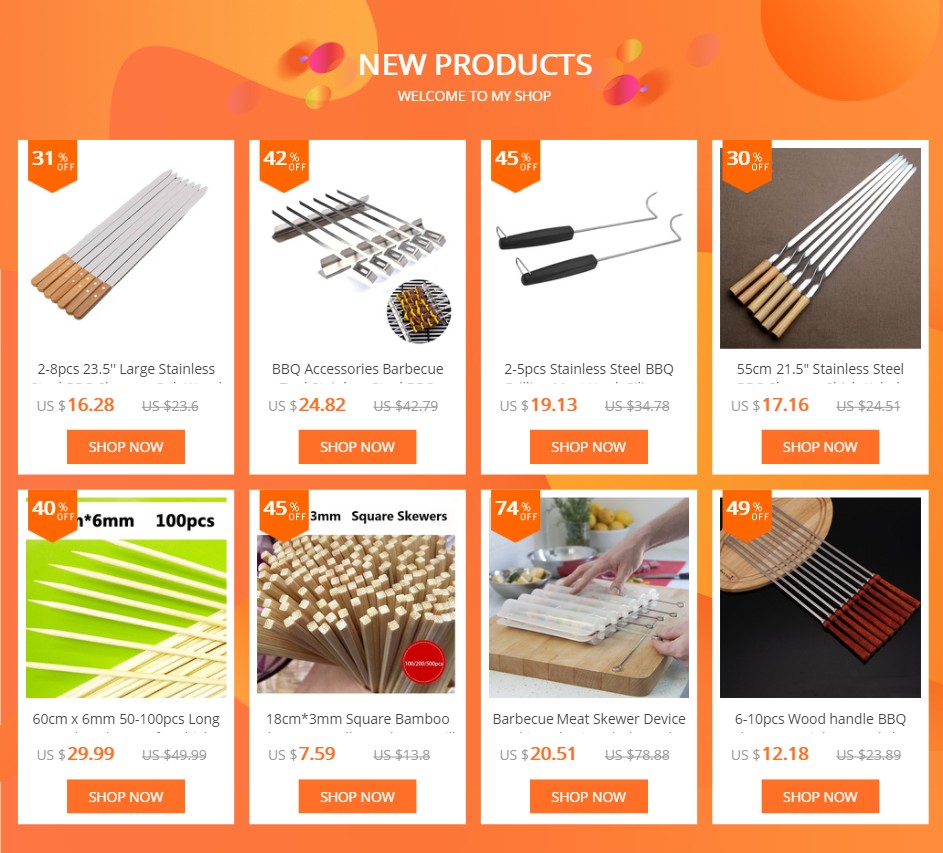 Barbecue skewers Feature: Food grade Stainless, Flat skewer, Shap head