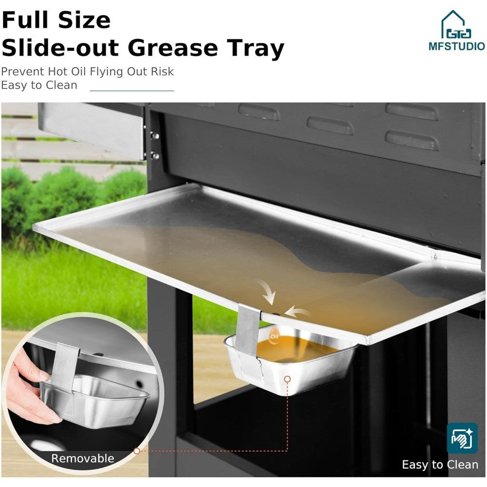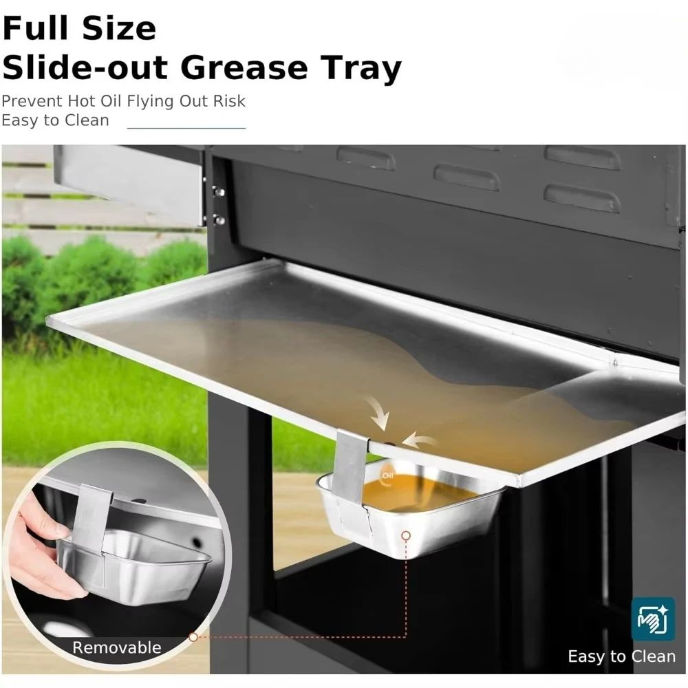- Convenient Side Burner: This outdoor grill with a side burner allows you to prepare side dishes or sauces while grilling up your main course. Cook everything efficiently without missing a beat