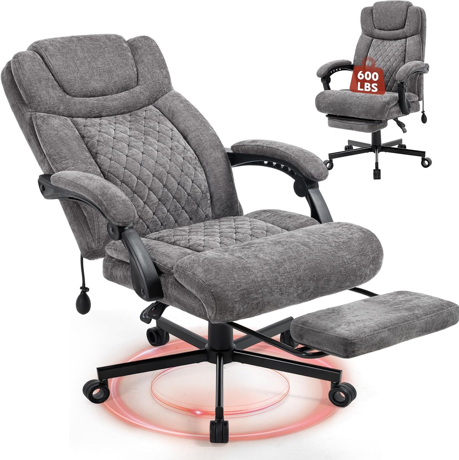 600LBS Big and Tall Office Chair for Heavy People,Large Reclining Executive Chairs with Foot Rest&AirAdjust Lumbar Support