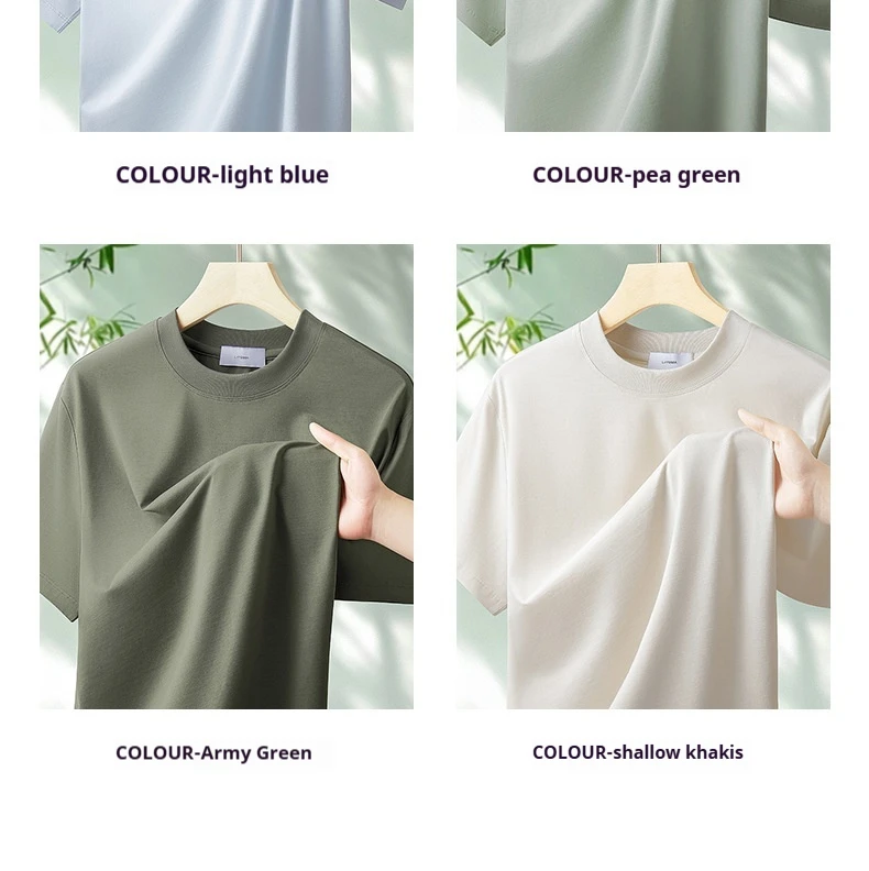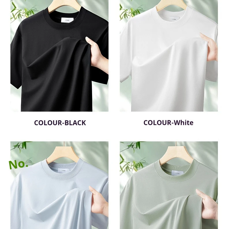 64% Cotton 25% Bamboo Fiber Cool T Shirt Men Short Sleeve Summer Tops For Men Round Neck Skin Friendly Solid Color Male Clothes