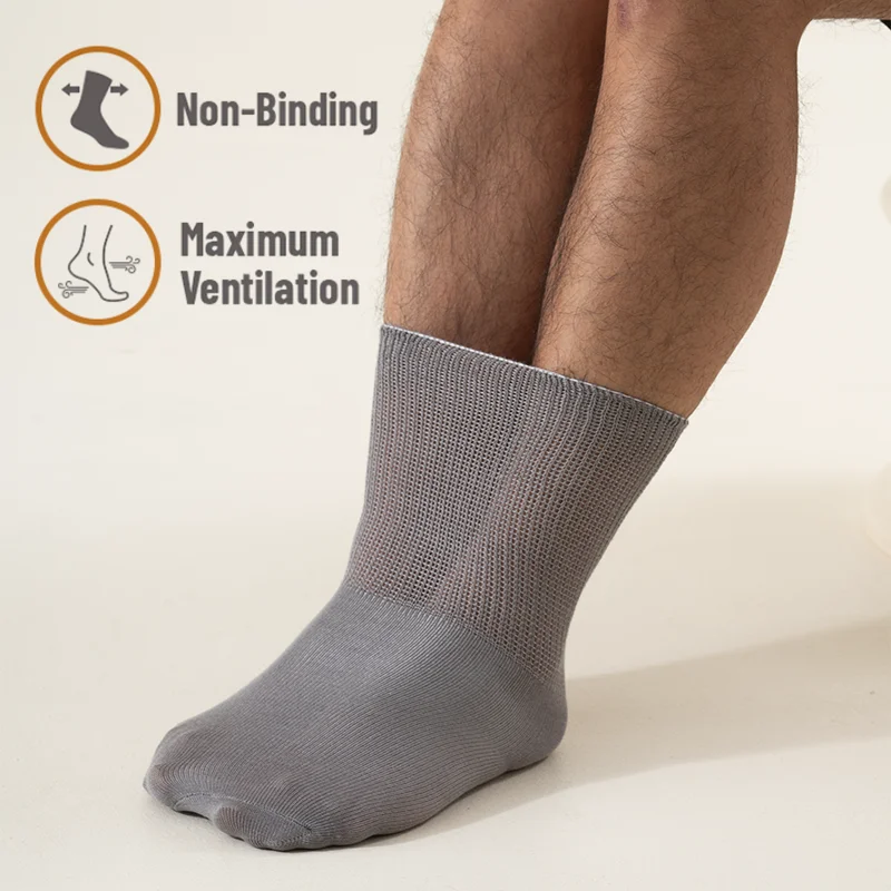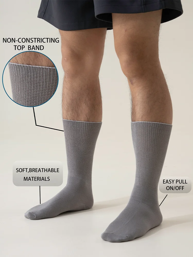6Pairs Comfortable and Supportive Diabetic Socks for Men Moisture wicking Fabric Non-binding Top business socks