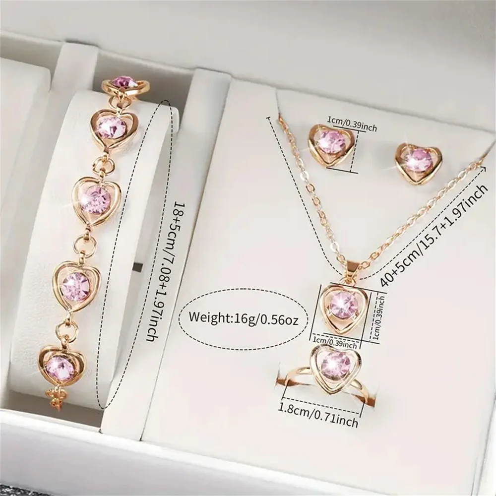 This quartz wristwatch set features a fashionable heart rhinestone design, adding a touch of elegance to any outfit.
