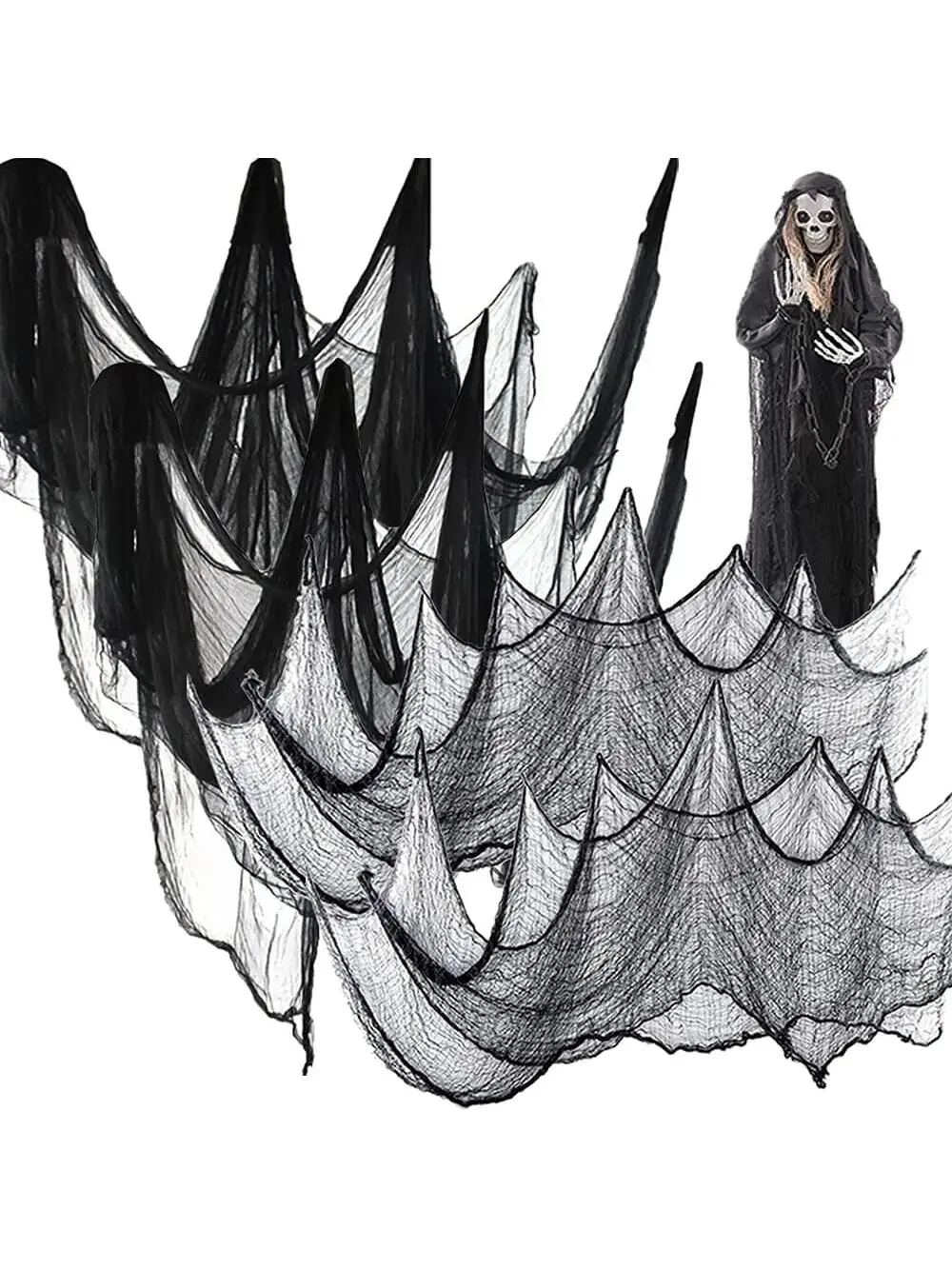 76X183 Cm Black Halloween Gauze Creepy Cloth Black Netting Spider Web Decor Halloween Horror House Party Decoration