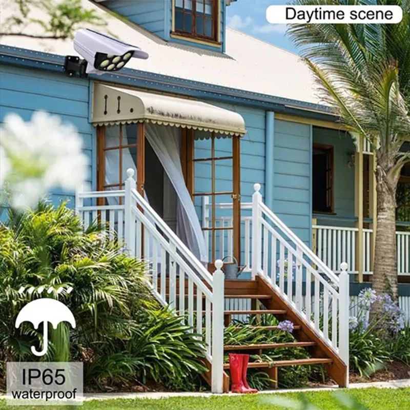 1.2-in-1 Solar Security Light: Keep your home property safe and intruders away. Featuring 77 bright, motion-activated LEDs, sleek, low-profile design. More realistic dummy security light.
