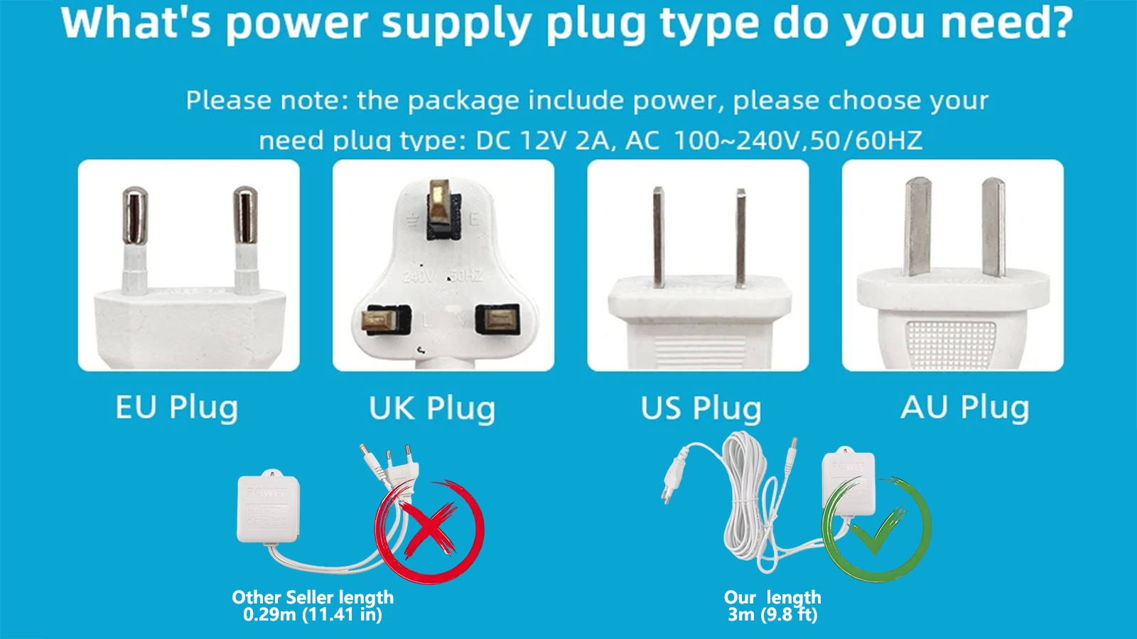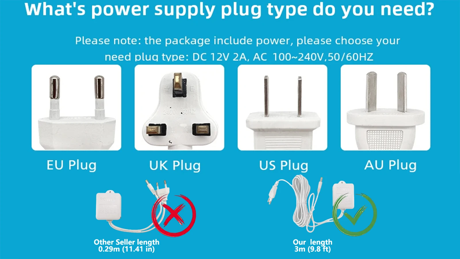 1x Power Supply(shorter than 1 meter)