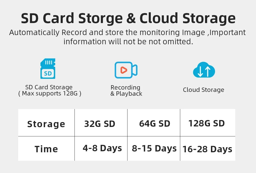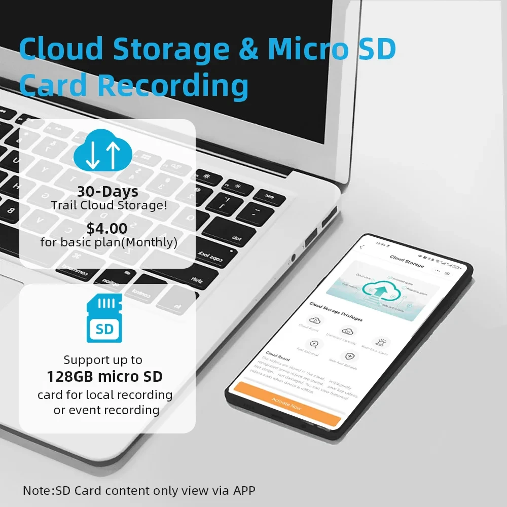 First month cloud storage and Max 128G SD card Record ,data security is more stable .
