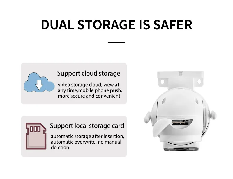 Builted in TF Card slot, Support max up to 128GB(For optional), Allows the recording of footage via Micro TF/SD card or Cloud storage.