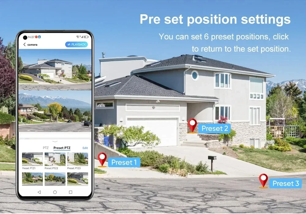 *After locking the target, the camera will automatically adjust the translation tilt rotation. Track moving objects, cars, pets, humans, and push alert notifications to your smartphone.