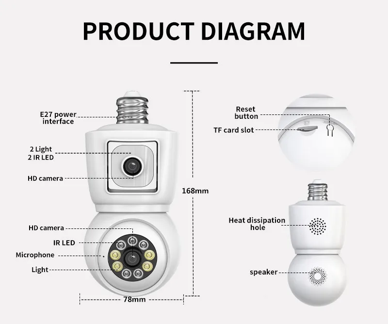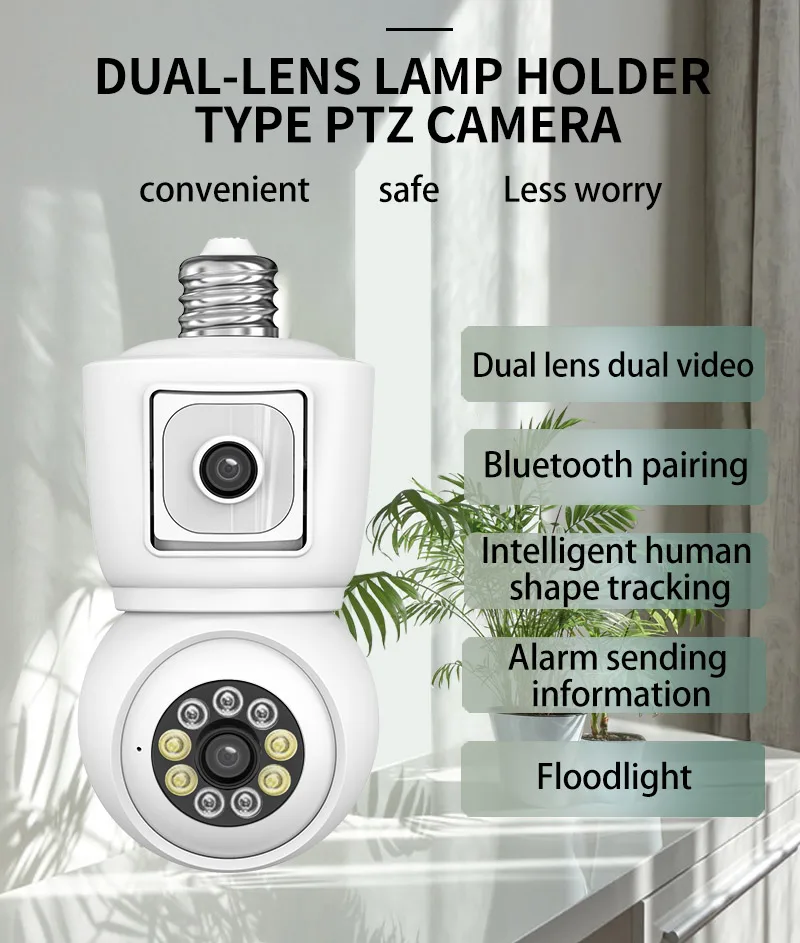 8MP E27 Bulb WiFi Camera 4K Dual Lens Dual Screen Cam Auto Tracking Two Way Audio Night Vision CCTV Security Protection ICSEE
