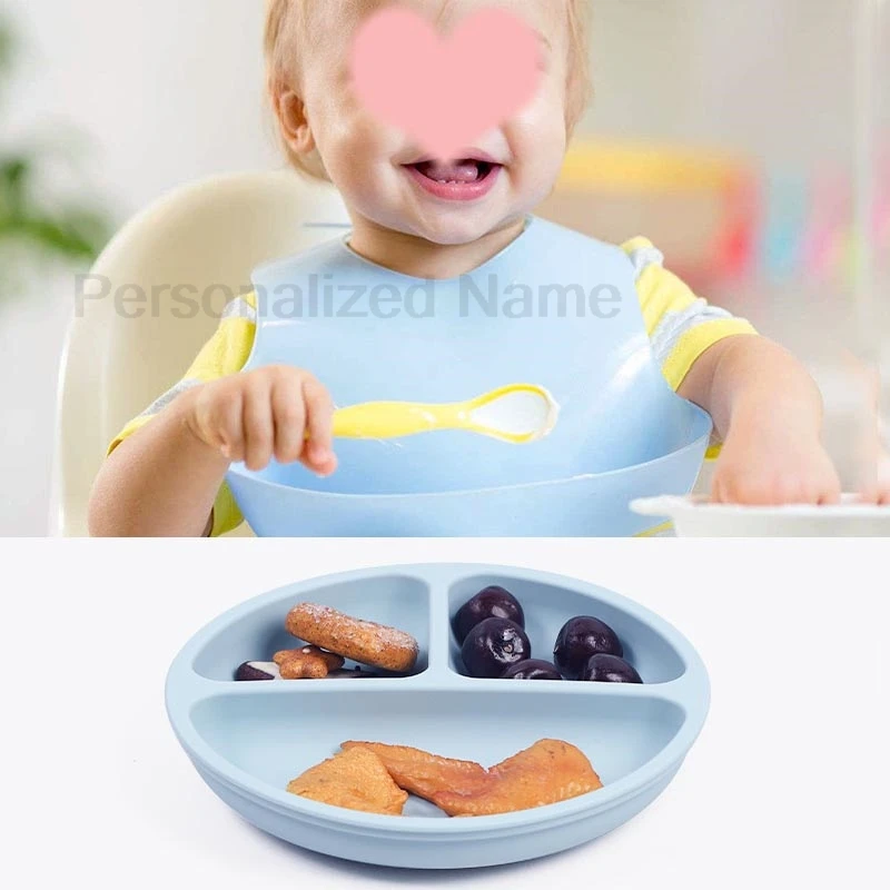 8Pcs Silicone Tableware Set Personalized Name Logo Baby Feeding Set Spoon Fork Suction Cup Bowl Silicone Dinner Plate For Kids