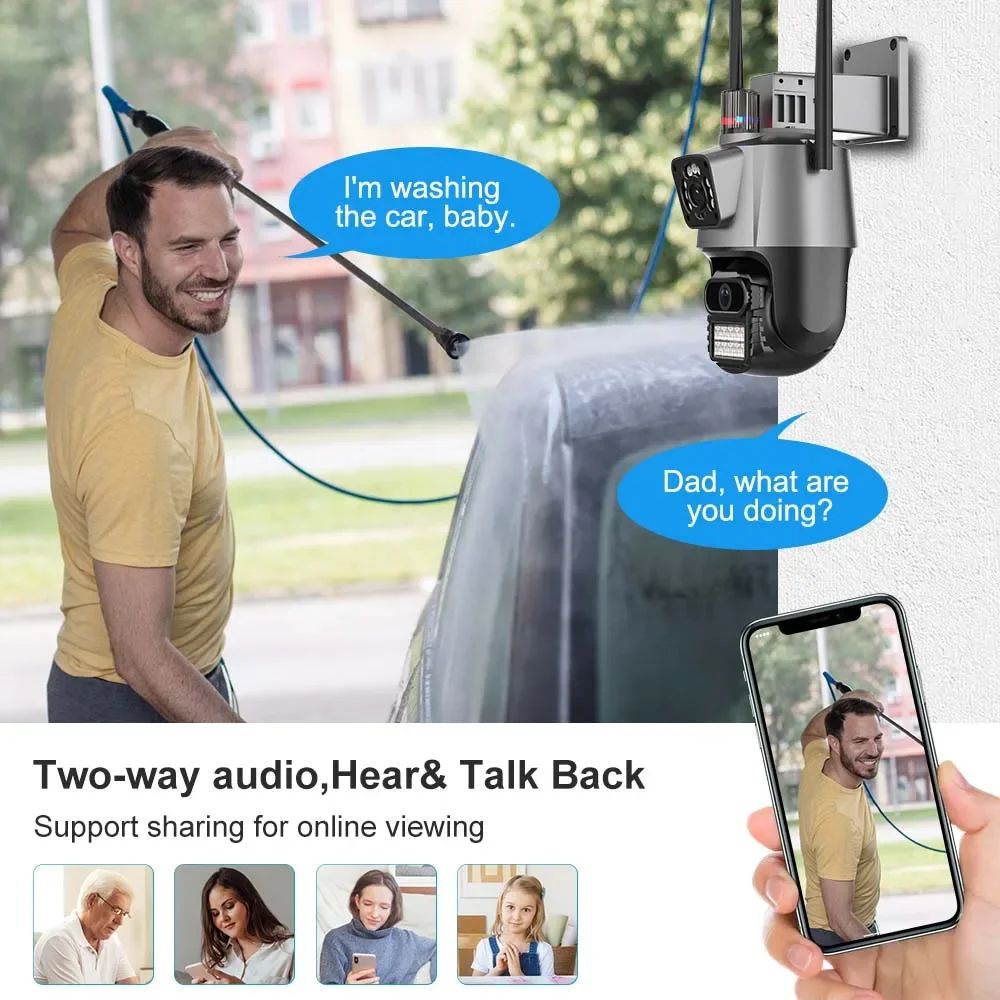9MP WiFi Camera Outdoor Three Lens Dual Screen 8X Zoom Security Camera 4K 6MP Video Surveillance PTZ ICsee Alexa NVR Bluetooth