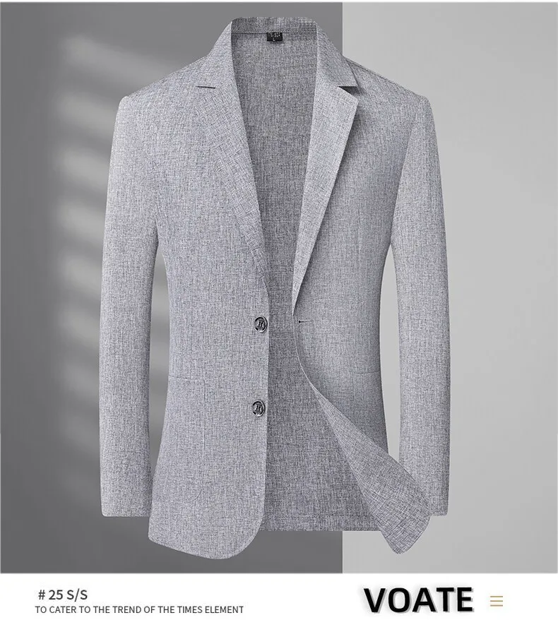 A fashionable and stylish men's sun-protective suit with a linen collar and two buttons, along with a sun-protective jacket