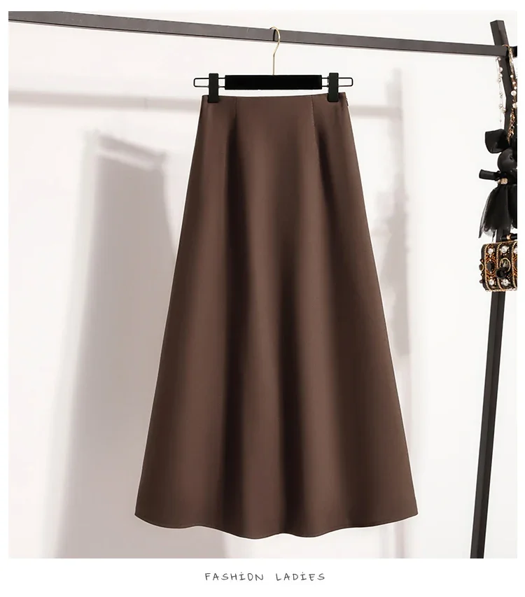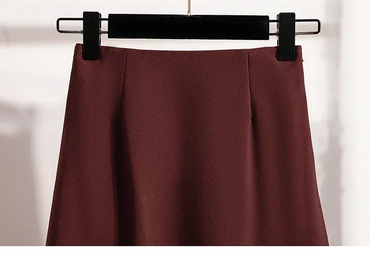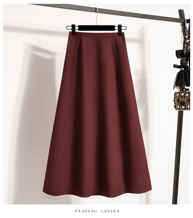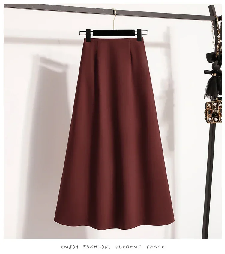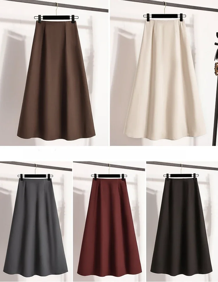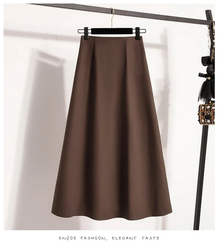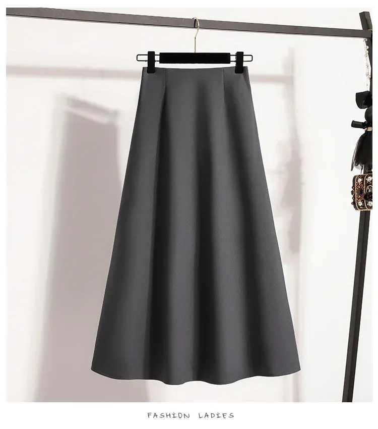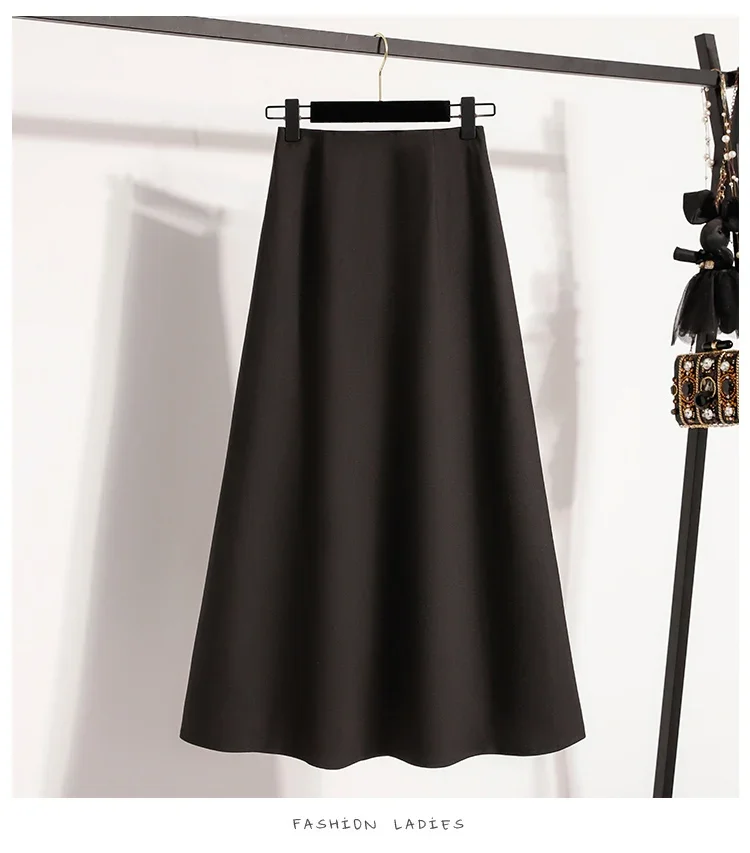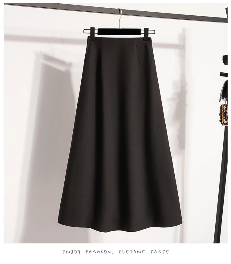 A-Line Mini Skirt High Waist Mid Length Skirts Women's Slimming Black Autumn Elastic Waist Design Solid Color Versatile Skirt