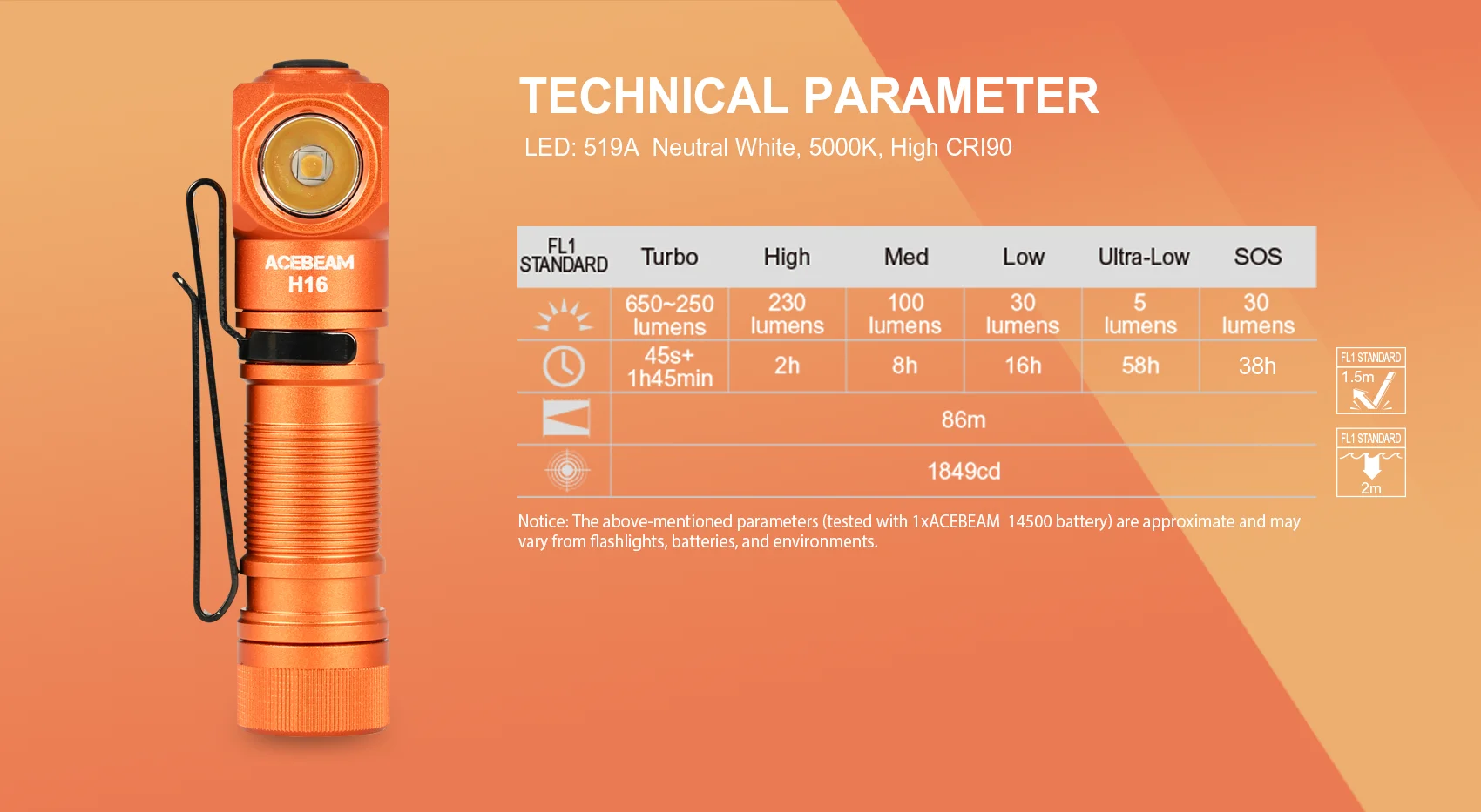 The H16 is a lightweight and compact high-CRI headlamp designed for fishing, running, backpacking, caving, and everyday outdoor use. It is the first flashlight to feature the 519A-V1 LED, delivering exceptionally accurate color rendering and a comfortable, natural light tone.