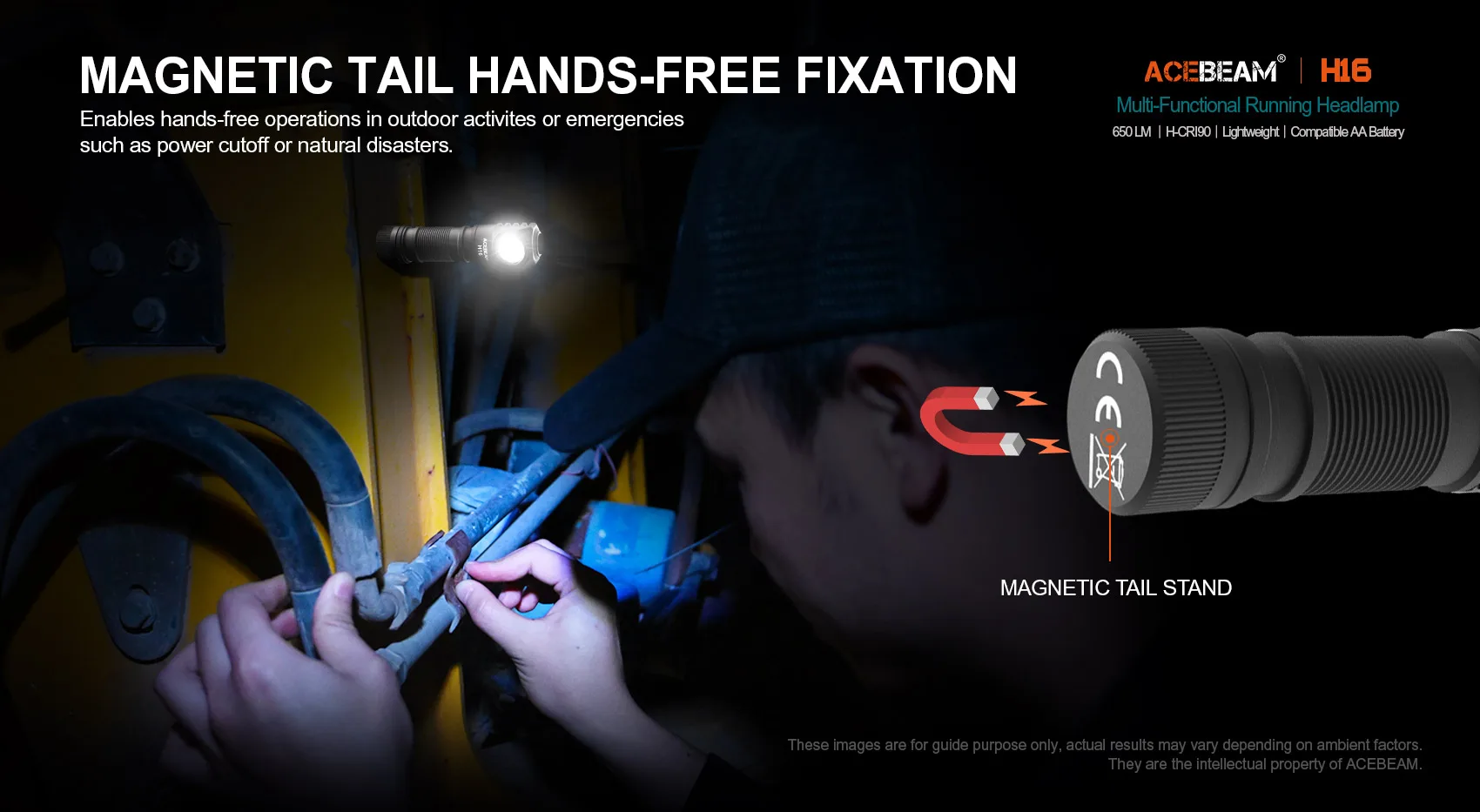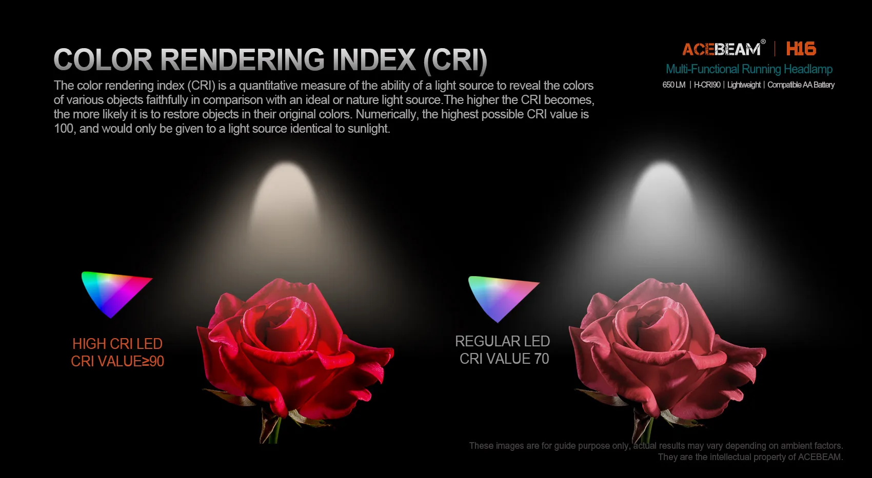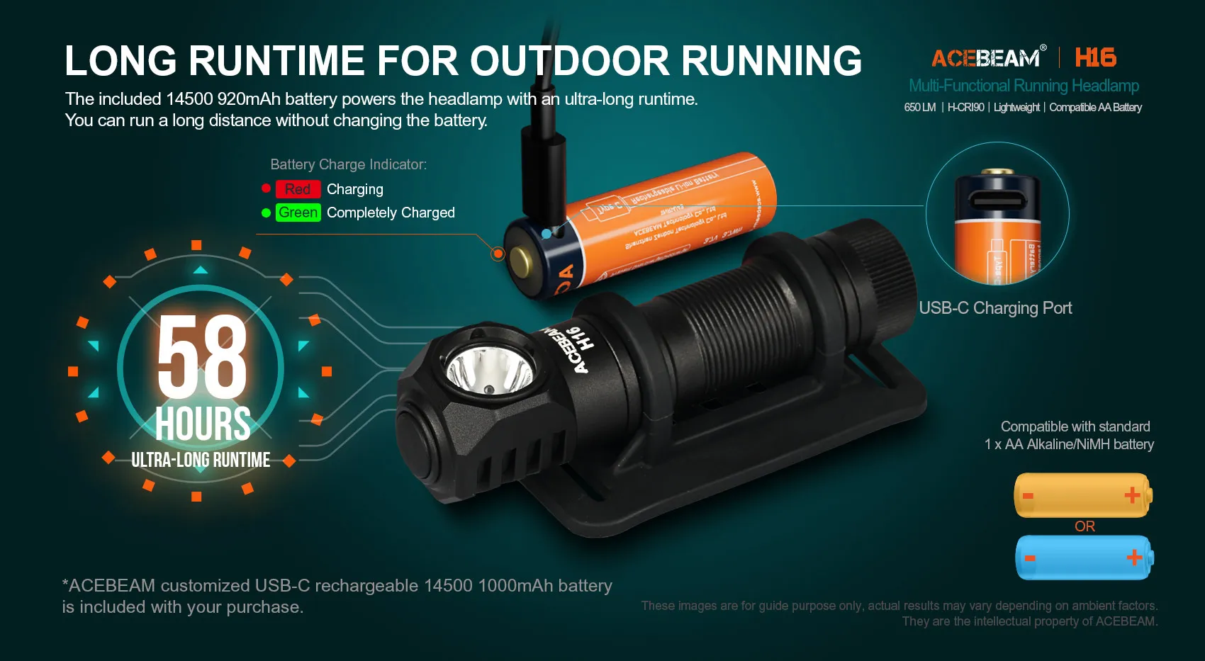 ACEBEAM High CRI LED Headlamp H16 Super Lightweight Rechargeable EDC Flashlight For Camping Working with Wide Voltage(1.2–4.2V)