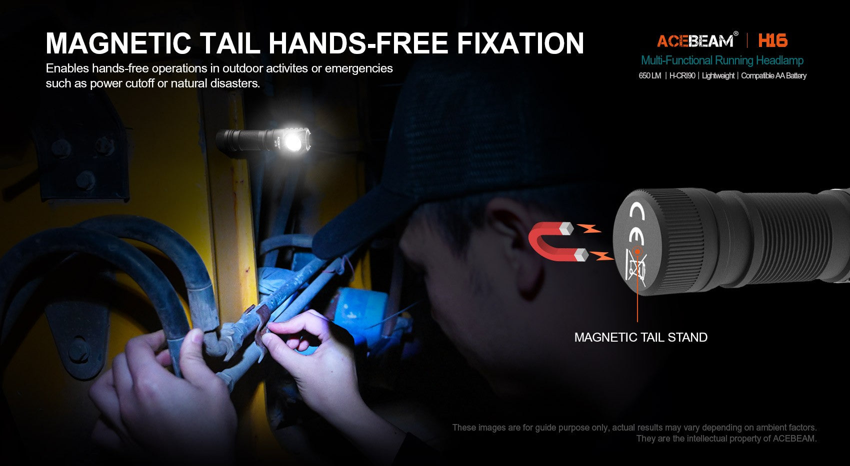 Outputting 650 lumens in 5000K neutral white, the H16 provides clear, glare-free light. Magnetic tail, pocket clip, and headband allow versatile use. A 6500K cool-white version is available for higher brightness.