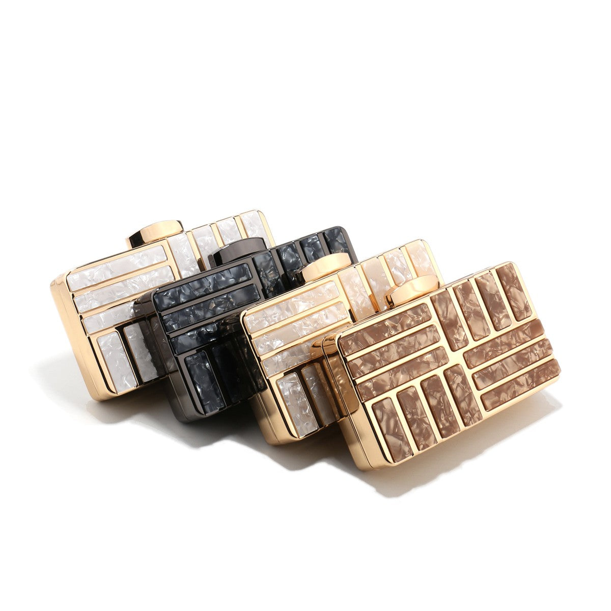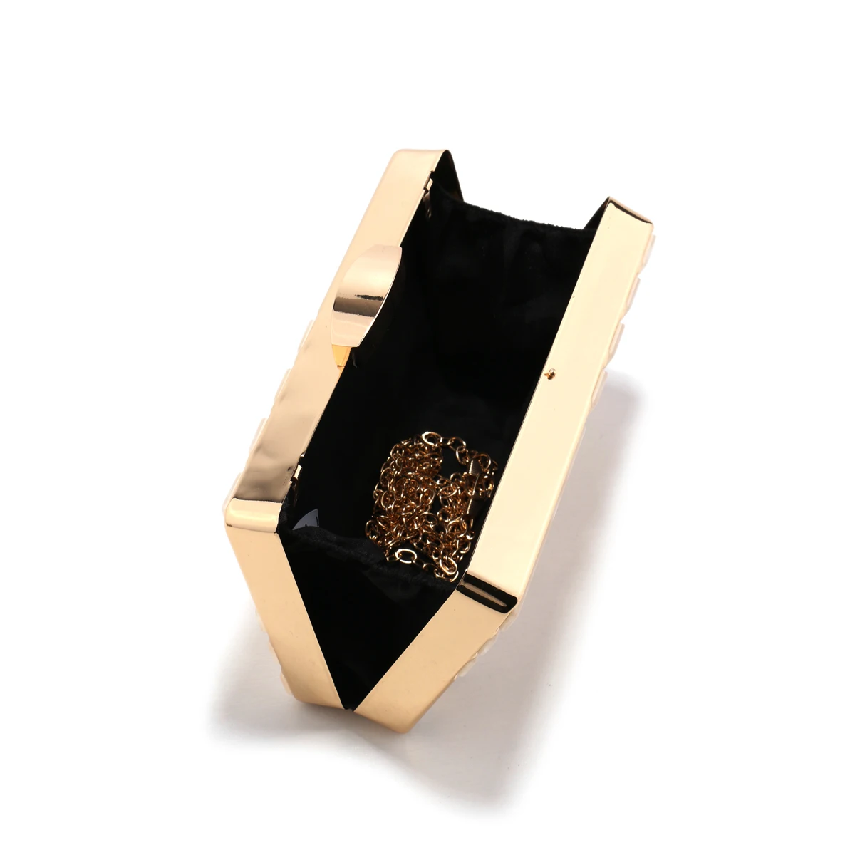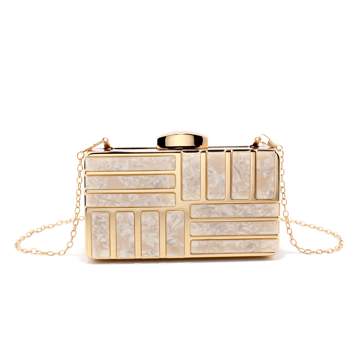 Acrylic Women Clutch Evening Bags Flap Luxury New Arrival Hollow Out Style Glitter Handbags Metal Chain Party Wedding Bridal Pro