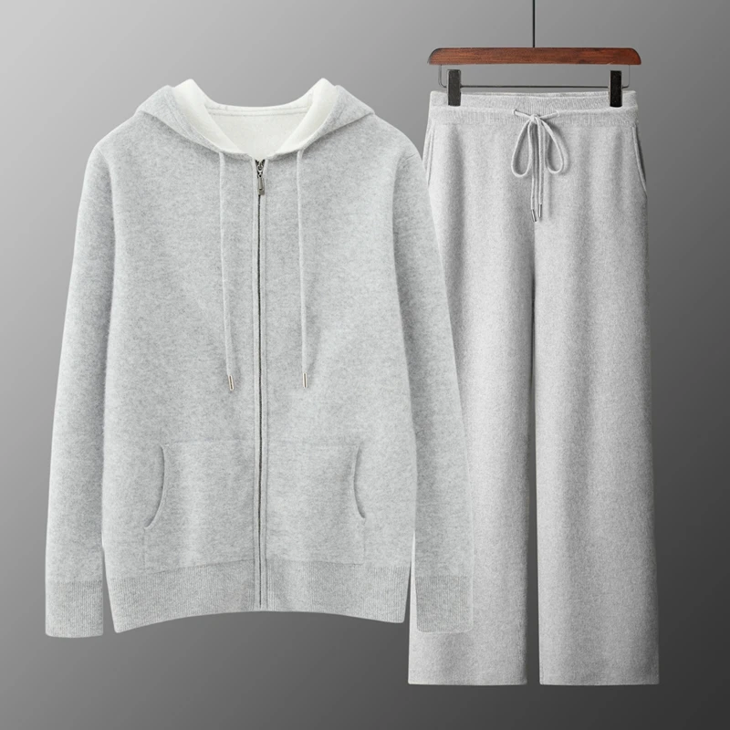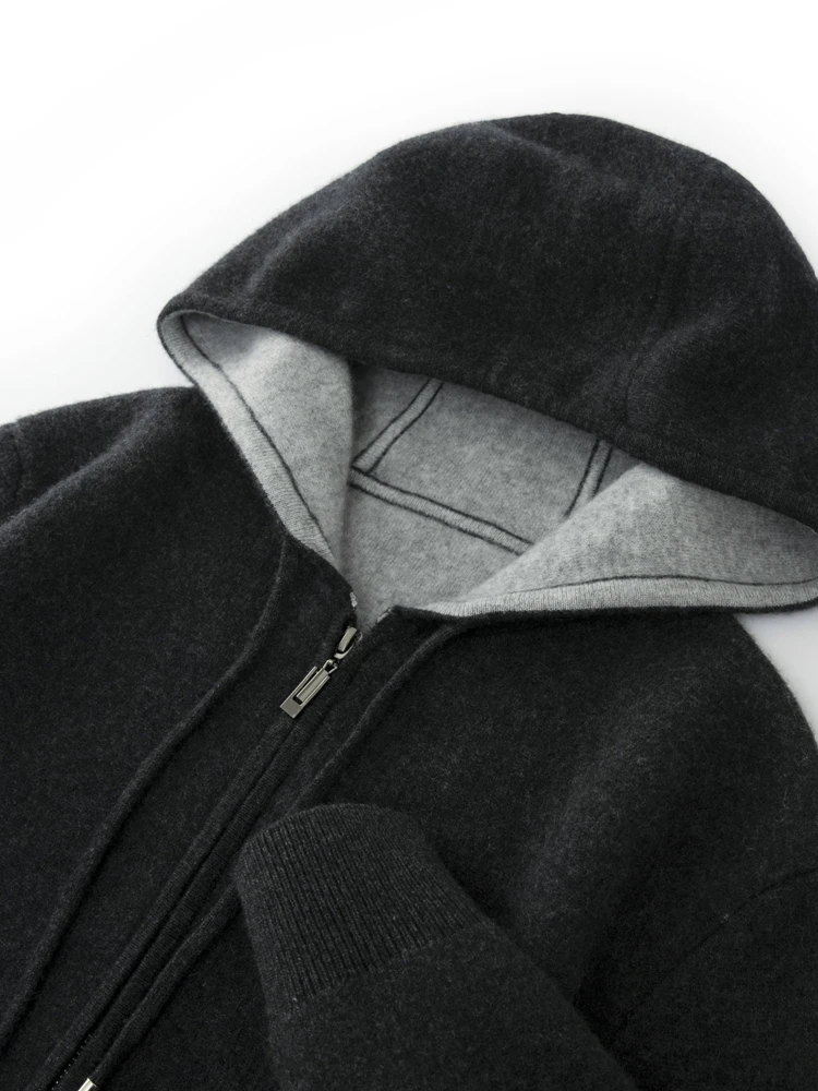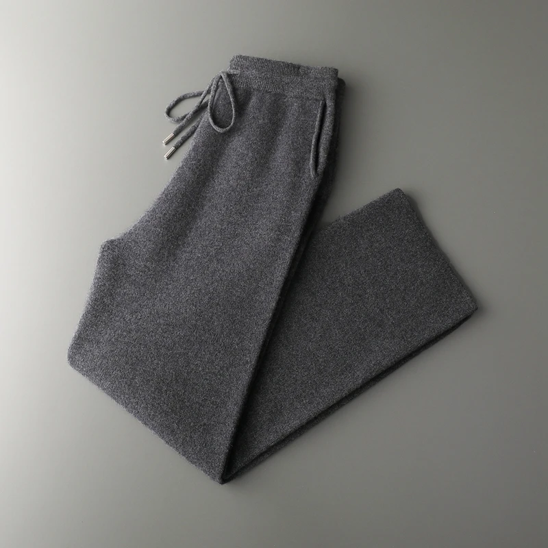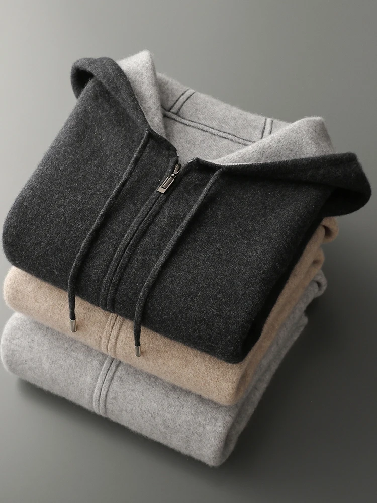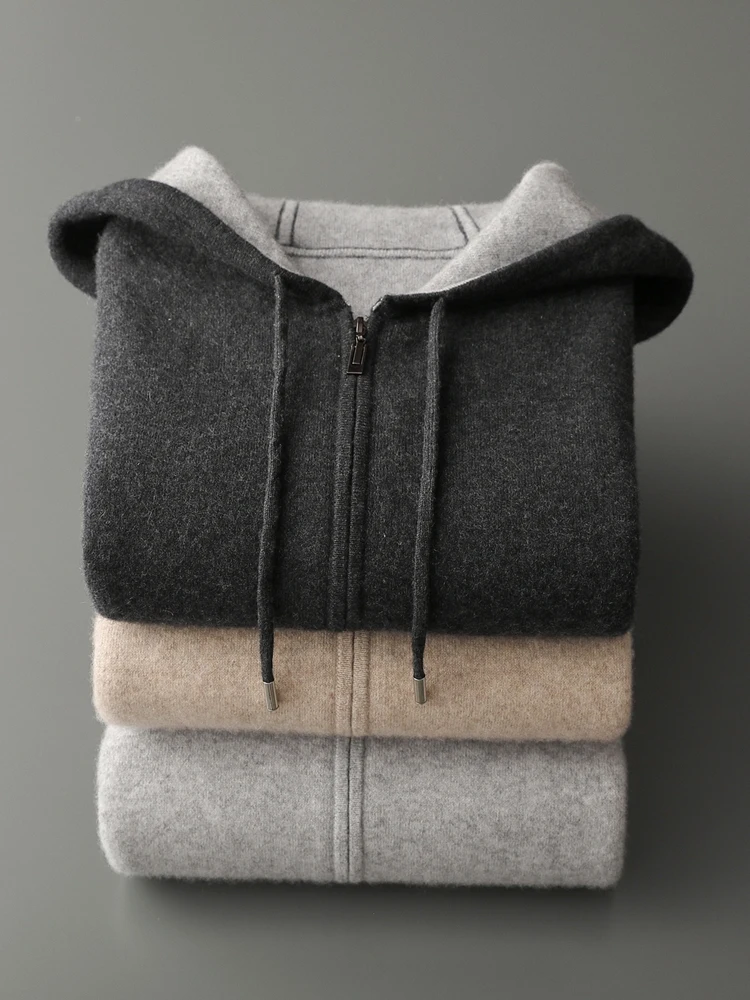 ADDONEE Men's 100% Wool Hoodie Cardigan Straights Leg Pants Set Autumn Winter Thick Cashmere Knitwear Sweater Trousers Suit