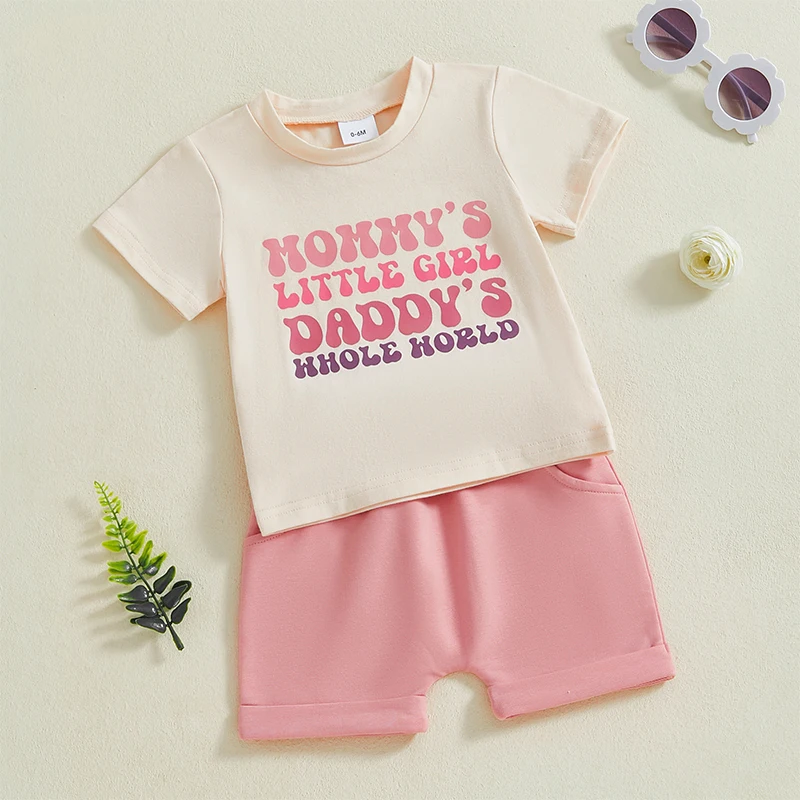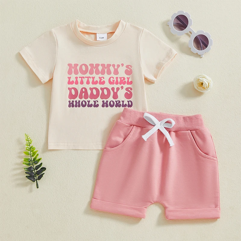 Adorable Infant Girl Casual Wear Set with Cute Printed Tee and Matching Solid Color Shorts for Summer Fun