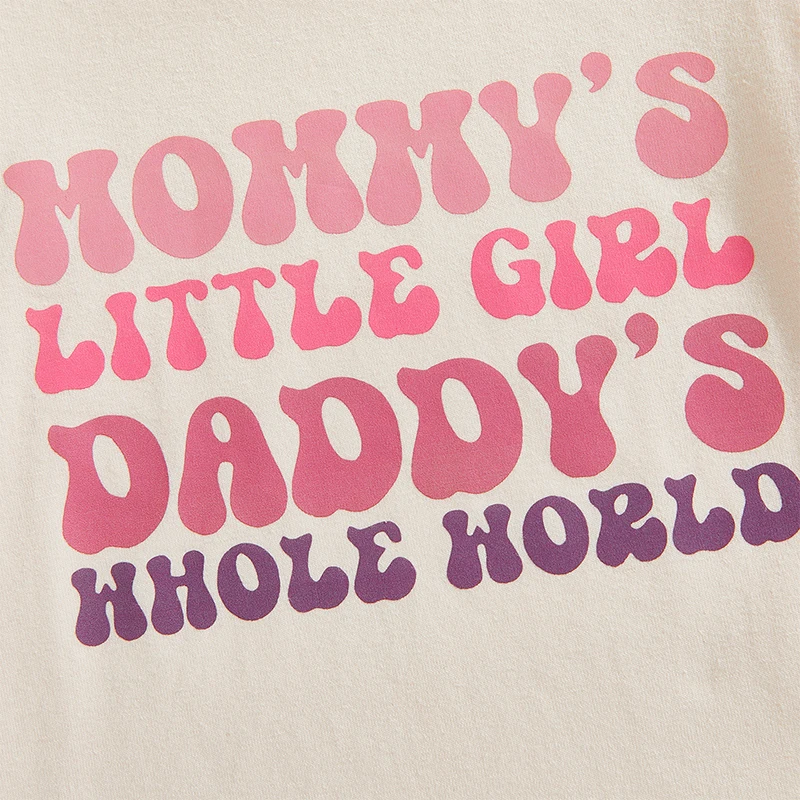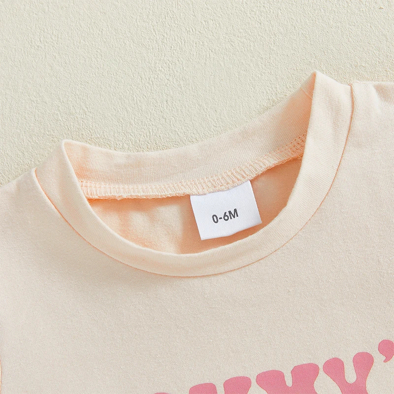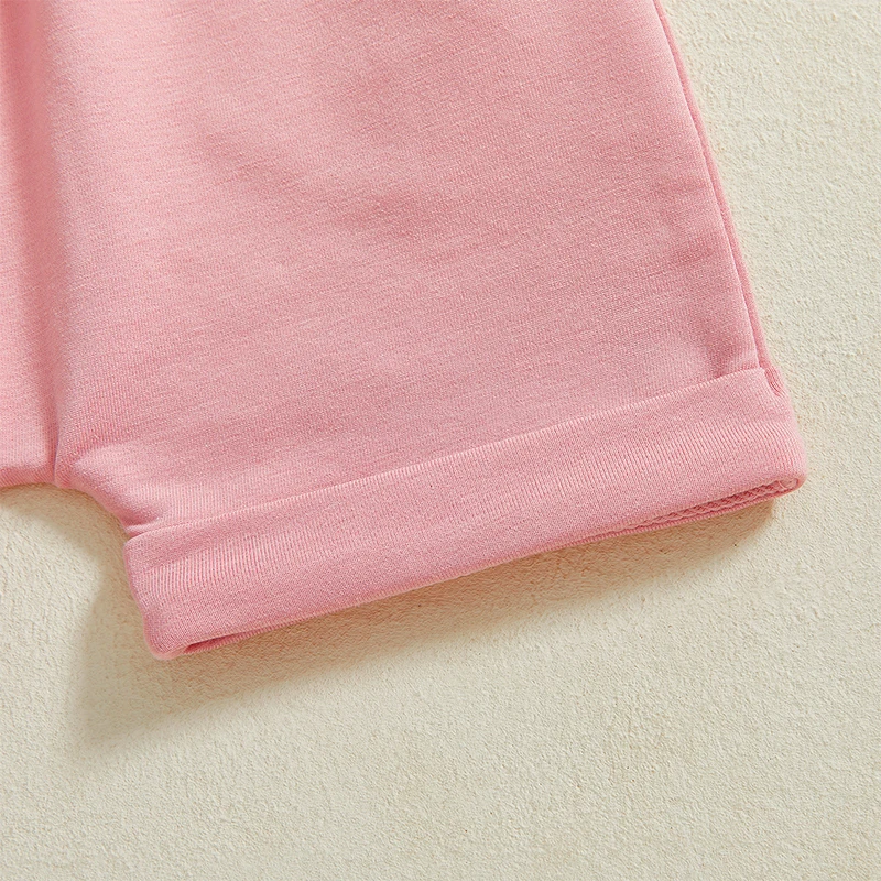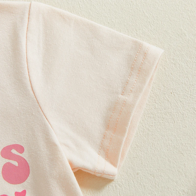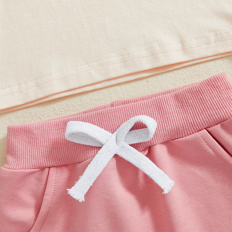 Toddler Baby Girl Summer Clothes Letter Print Short Sleeve Round Neck Tops Solid Color Shorts OutfitSize(cm)