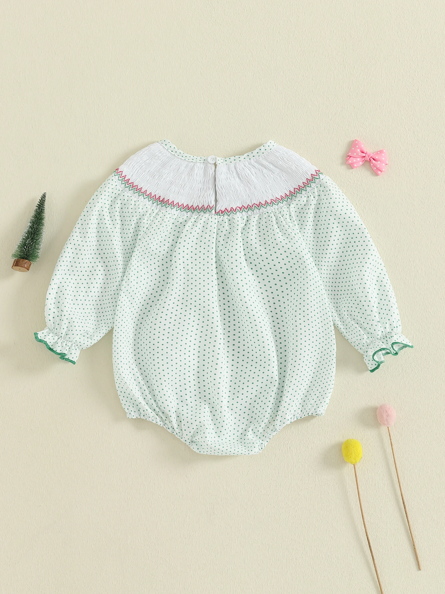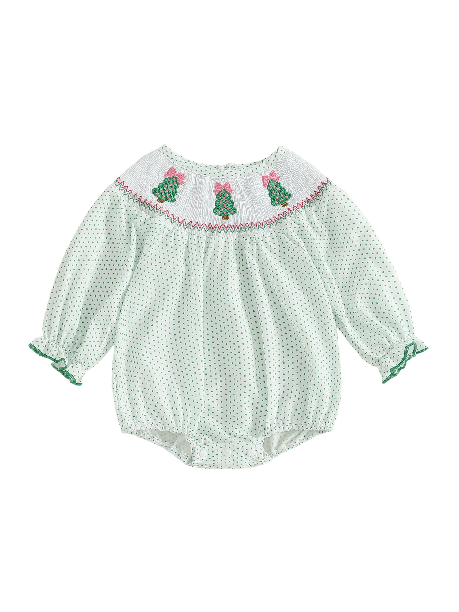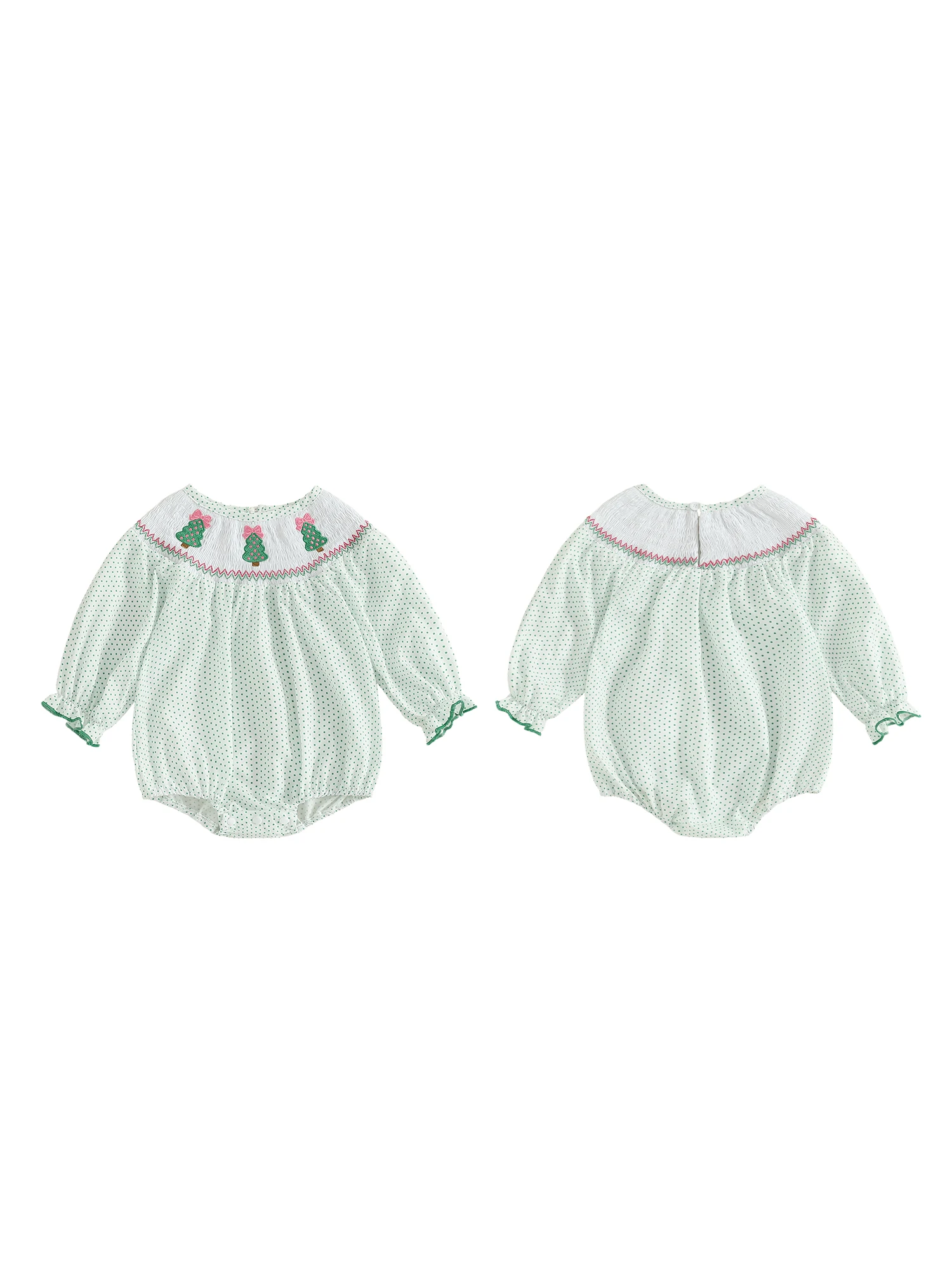 Christmas Infant Baby Girls Rompers Cute Long Bubble Sleeve O Neck Dot Print Tree Embroidery Jumpsuit