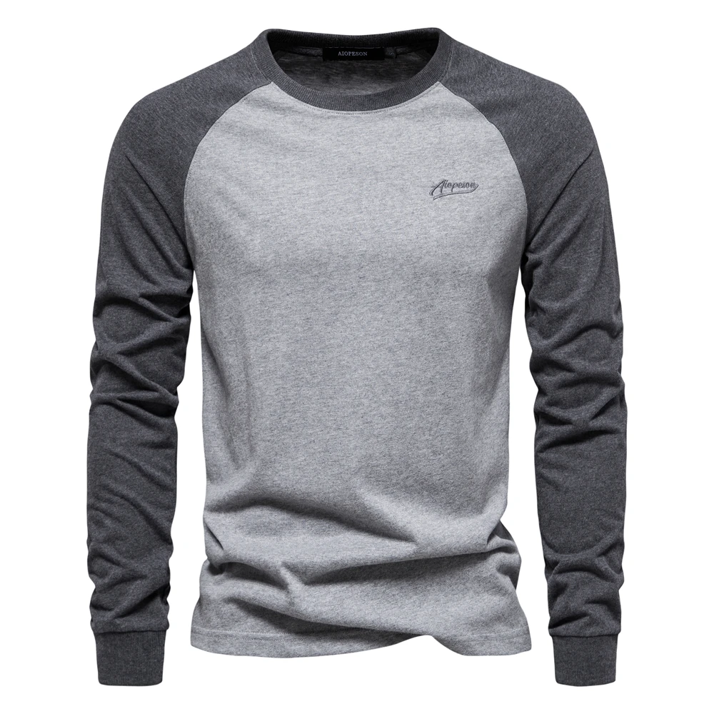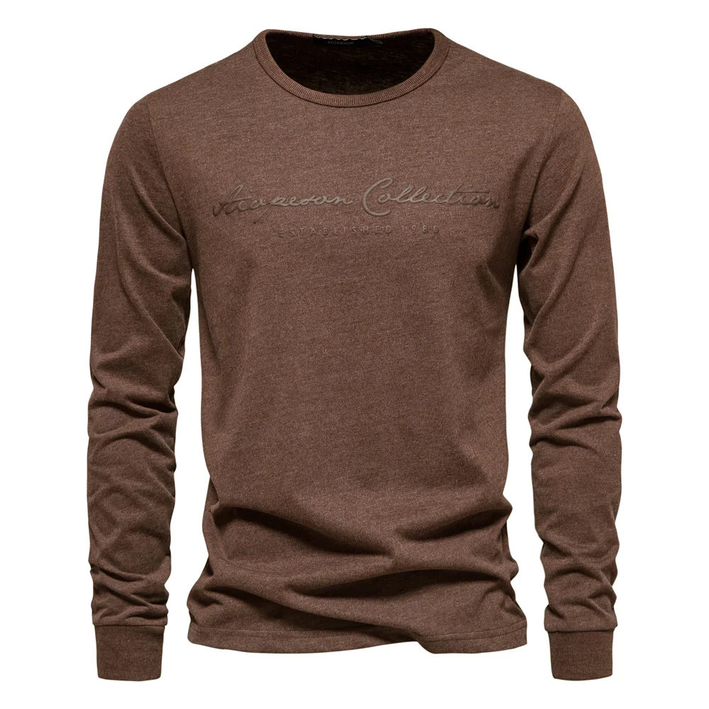 AIOPESON 100% Cotton Long Sleeve Men's T-shirt Solid Color Letter Print Casual T shirts for Men New Spring Tops Tee Men Clothing