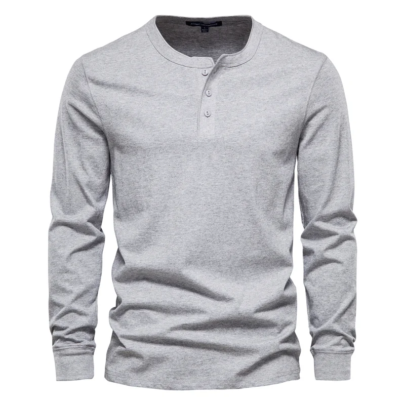 AIOPESON Henley Collar T Shirt Men Casual Solid Color Long Sleeve T Shirt for Men Autumn High Quality 100% Cotton Mens T Shirts