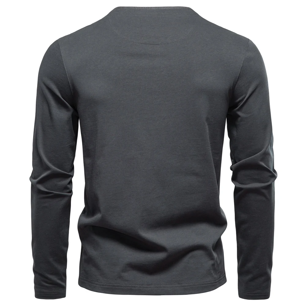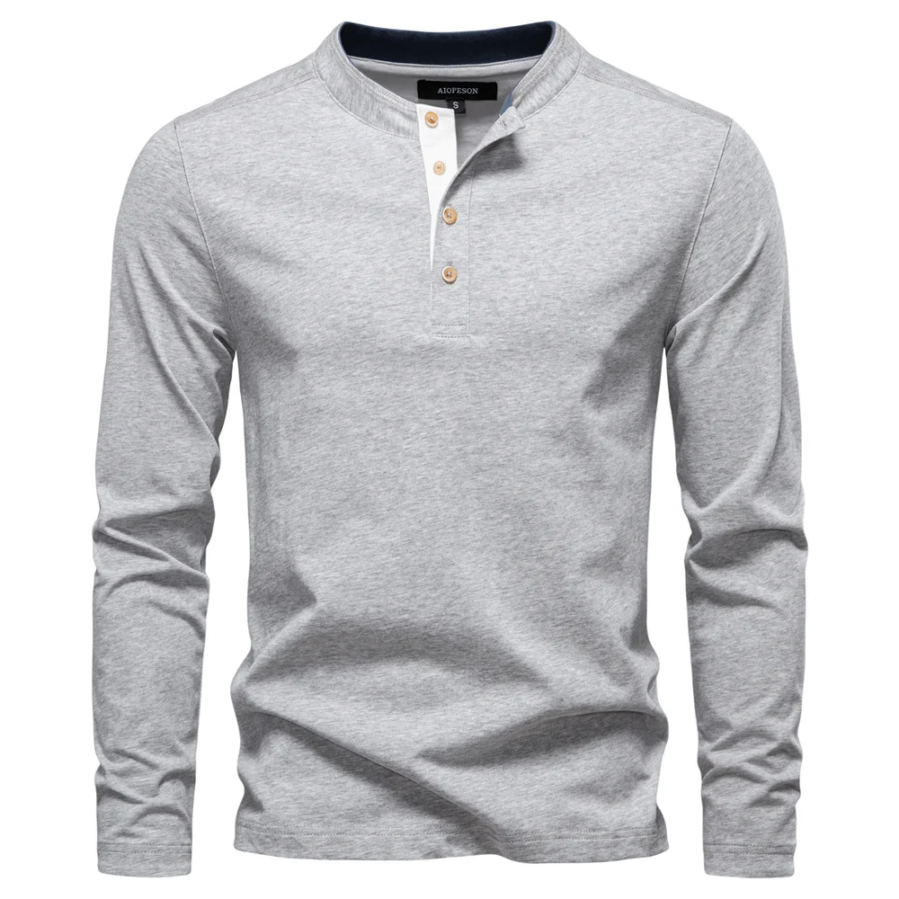 AIOPESON Men's Long SleeveT-shirt Fashion HIgh Quality Cotton t shirt for man button collar basic tshirt