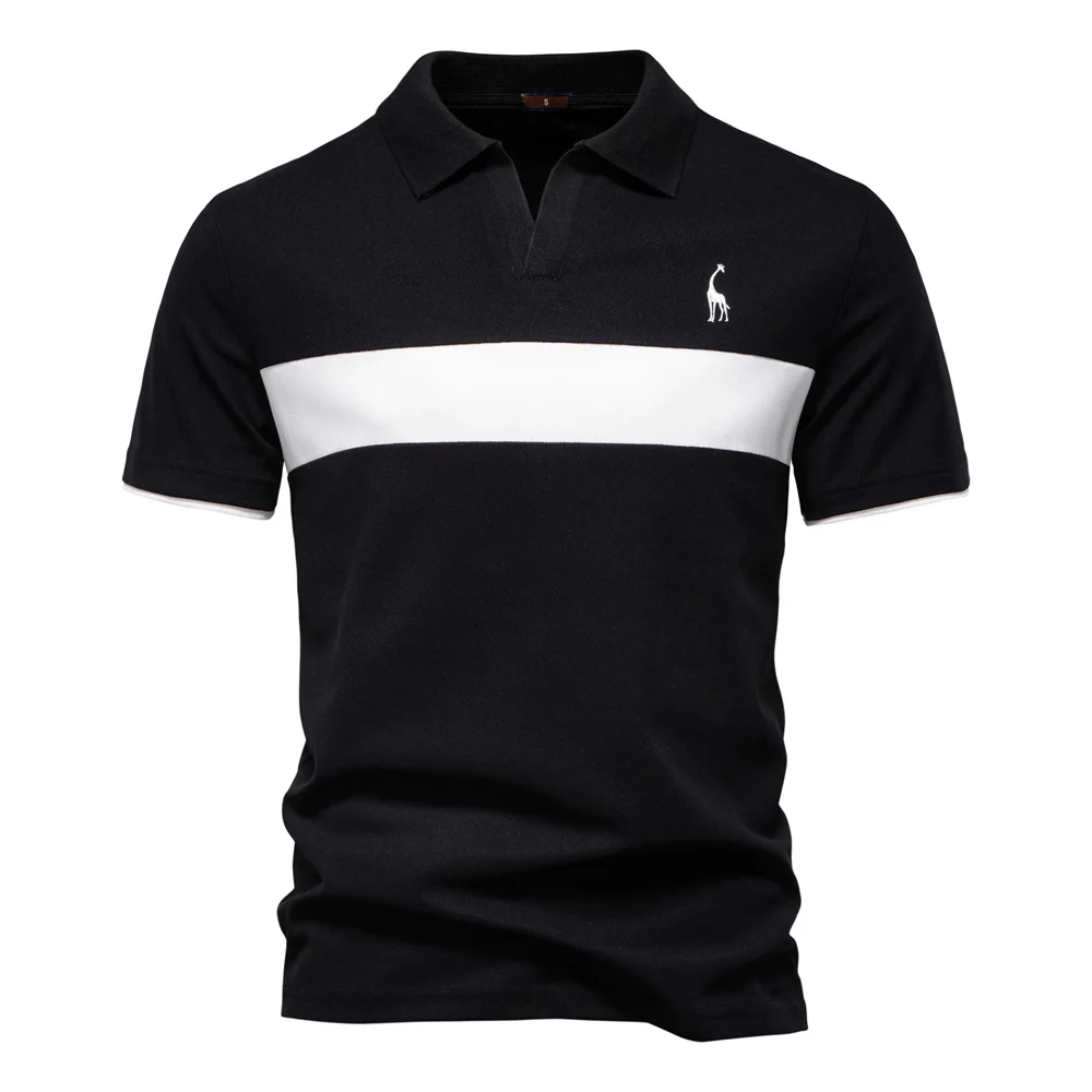 AIOPESON Men's Summer V-Neck Striped Polo Shirt Breathable Slim Fit Polo Shirts for Men Lightweight Casual Athletic Polo