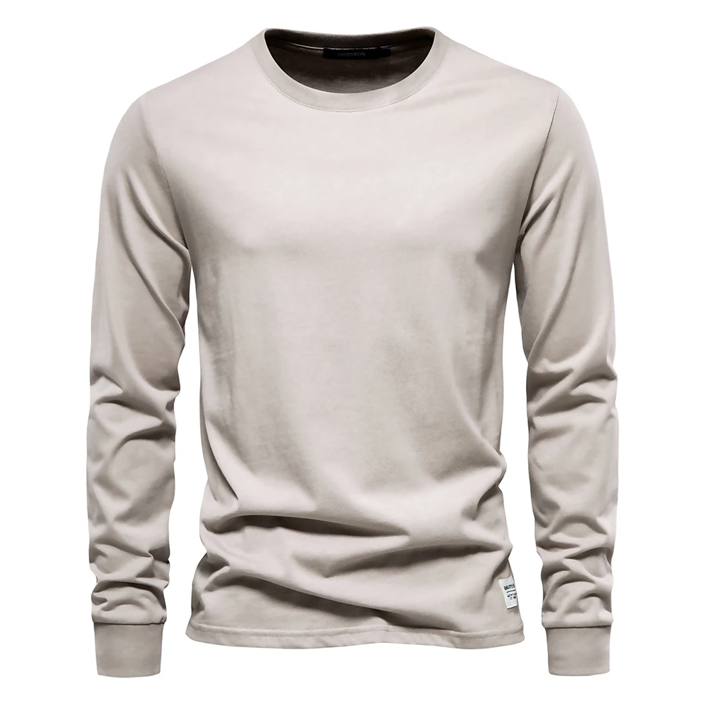AIOPESON Solid Color Cotton T Shirt Men Casual O-neck Long Sleeved Mens Tshirts Spring Autumn High Quality Basic T-shirt Male