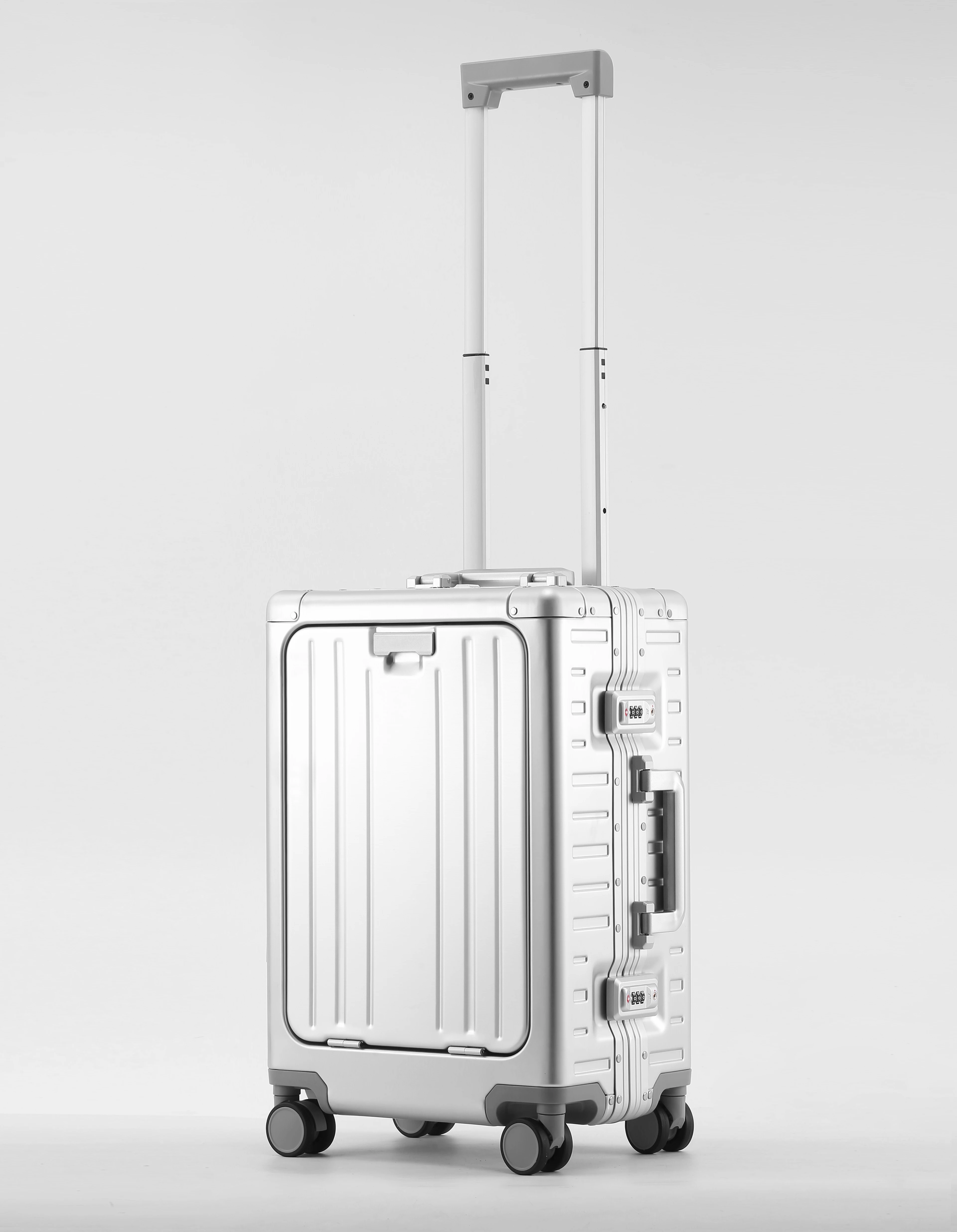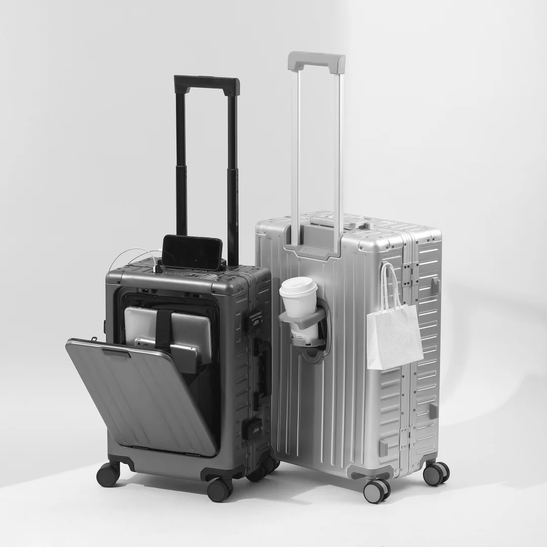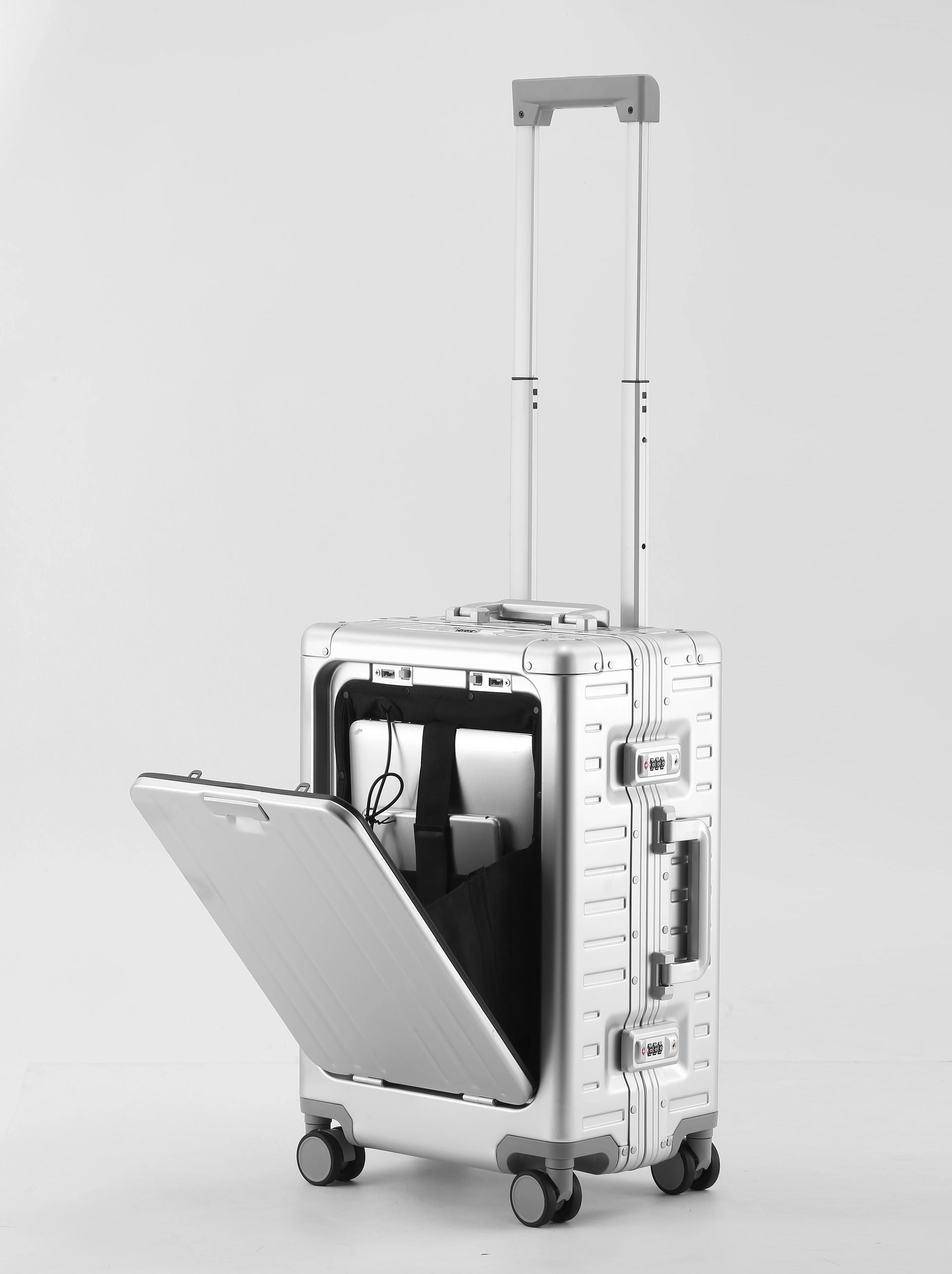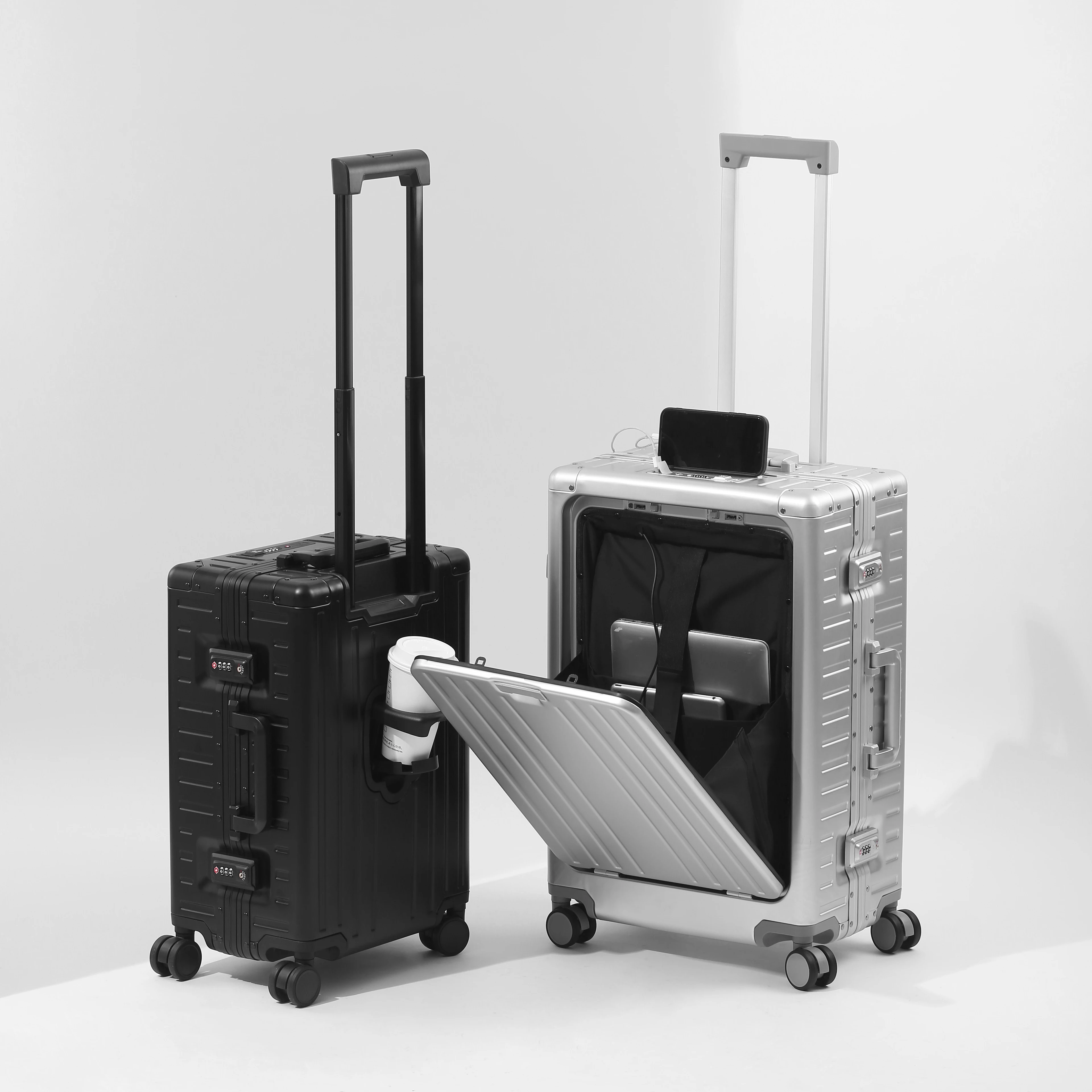 All Aluminum-magnesium Suitcase Front Opening Rolling Luggage with USB Charging Plug TSA Lock Trolley Case 20" Boarding Travel