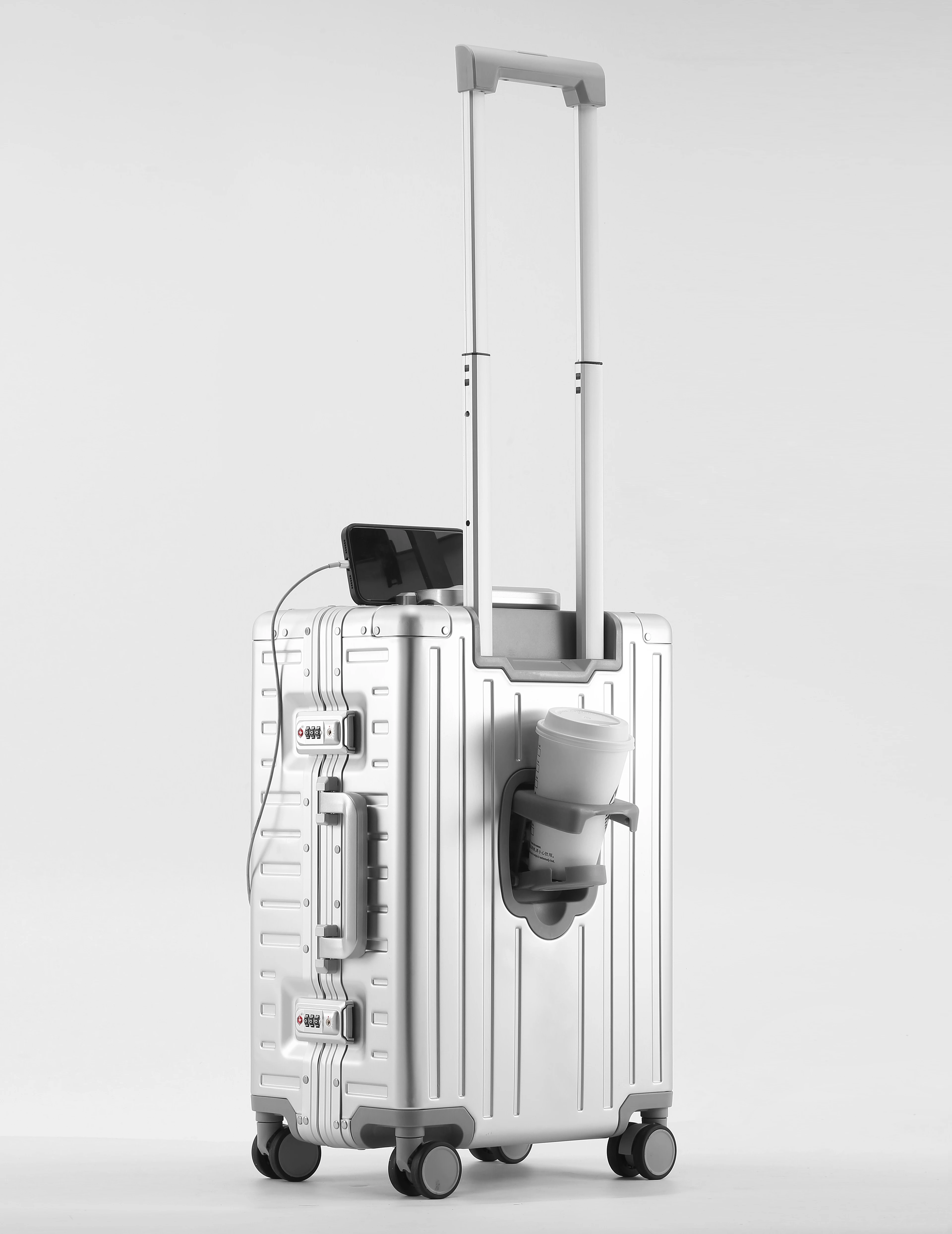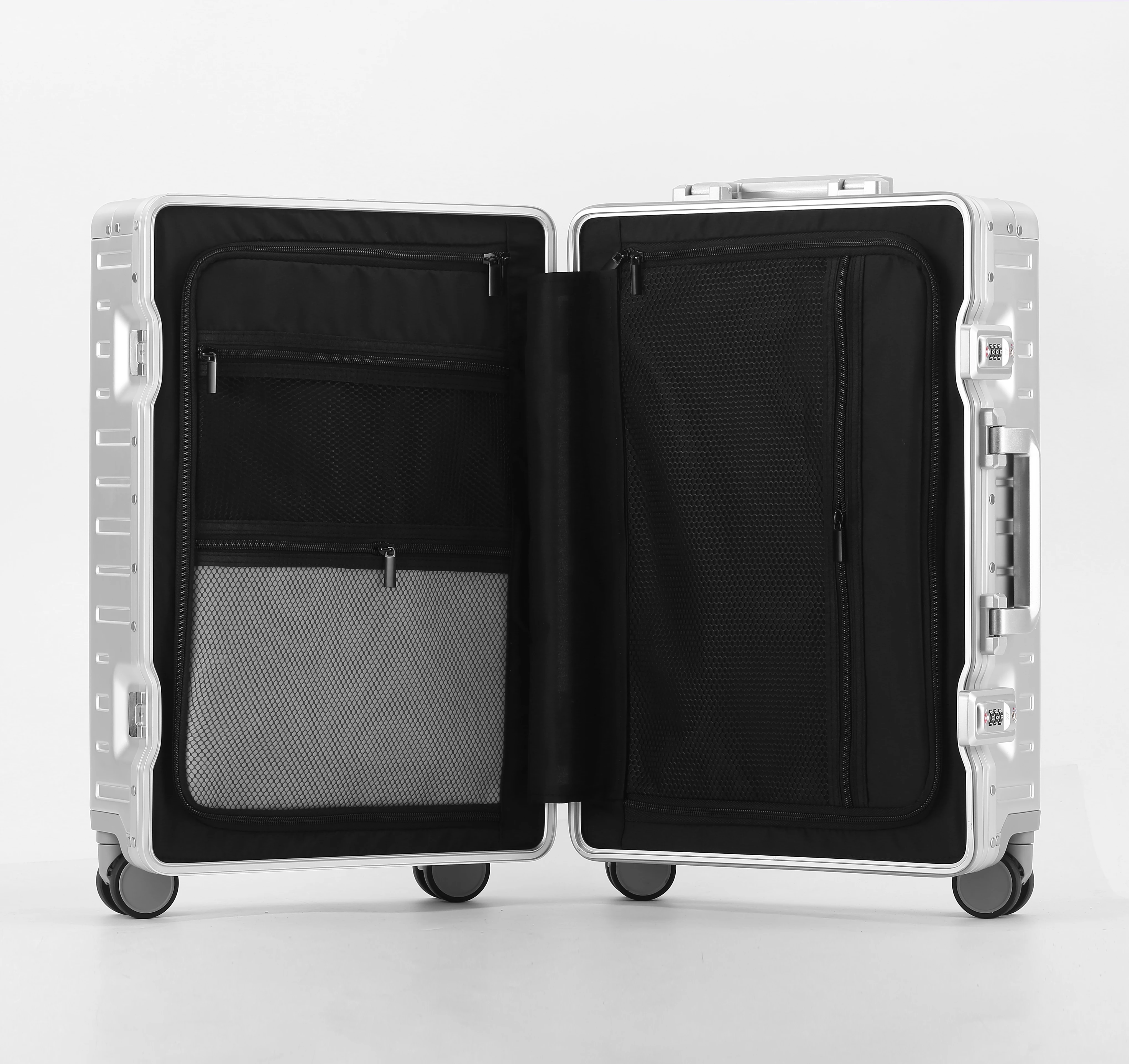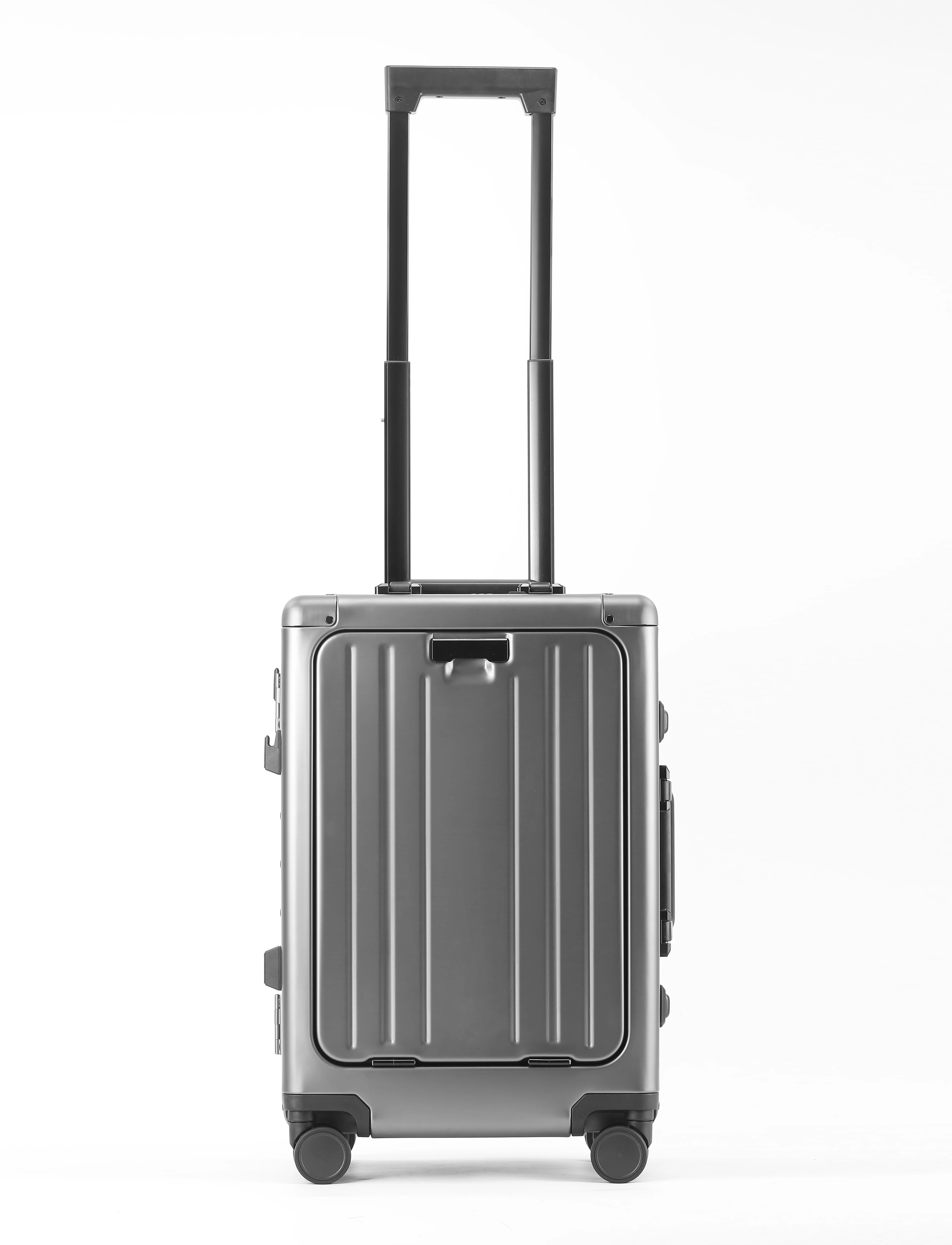 All Aluminum-magnesium Suitcase Front Opening Rolling Luggage with USB Charging Plug TSA Lock Trolley Case 20" Boarding Travel