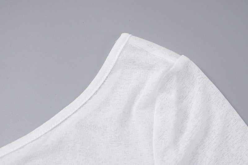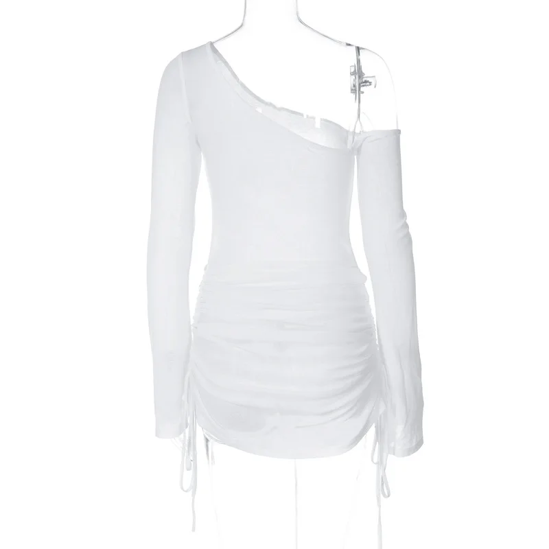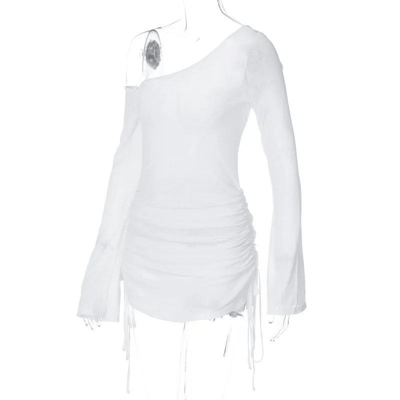 ALLNeon Fairycore White Perspective Oblique Shoulder Long Sleeve Mini Dress Hots