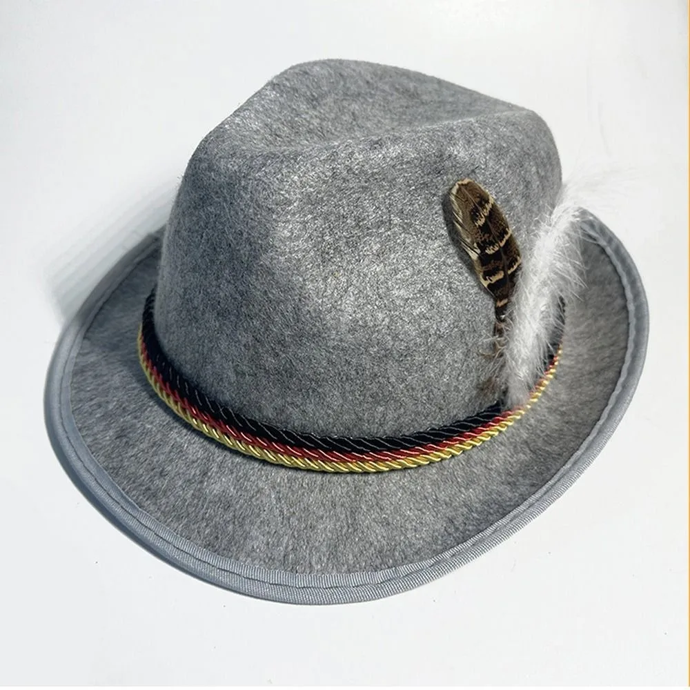 Alpine Hats Feather Decors Hat Western Bavarian Costume Cosplay Cap Swiss Dress Up Oktoberfest Hat Men Women Party Photo Props