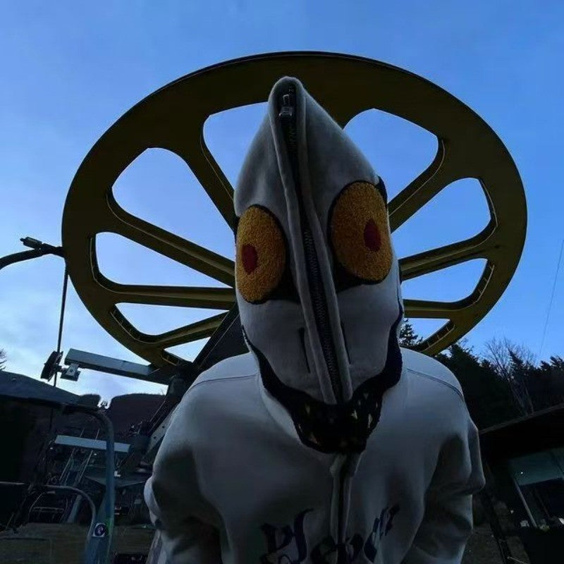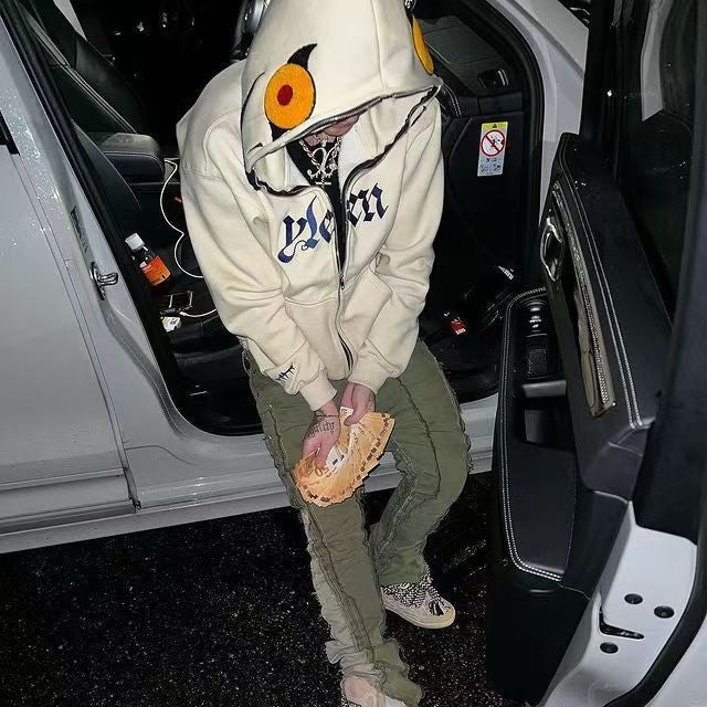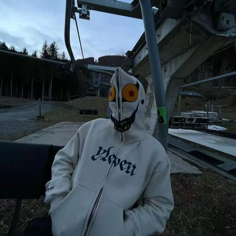 American fashion funny full zipper monster headgear men hoodie Y2K gothic Harajuku high street clothing casual loose sportswear