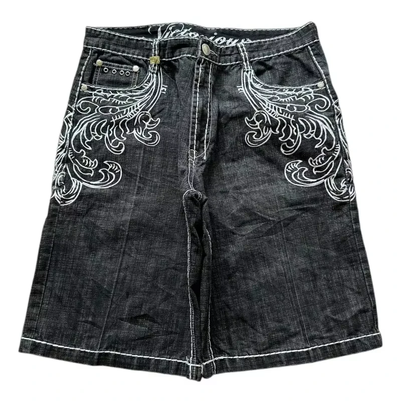 American Fashion Hip Hop Embroidered Denim Shorts Men Street Y2K New Casual Vintage Loose Jeans Unisex Harajuku Punk Rock Shorts