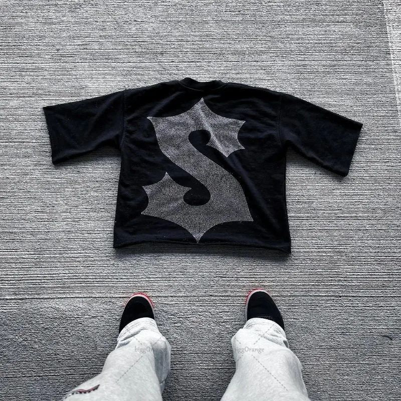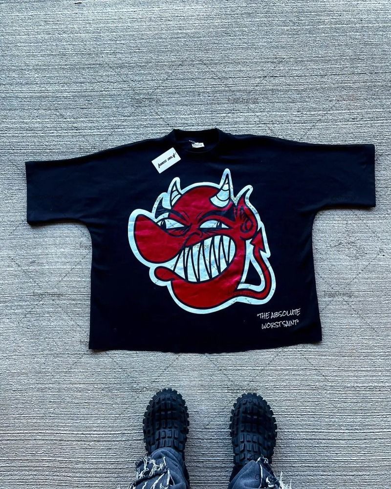 American Hip-hop Anime Print Oversized T-shirt Men Retro Trendy Streetwear Top Pure Cotton Round Neck Casual Loose Short Sleeves
