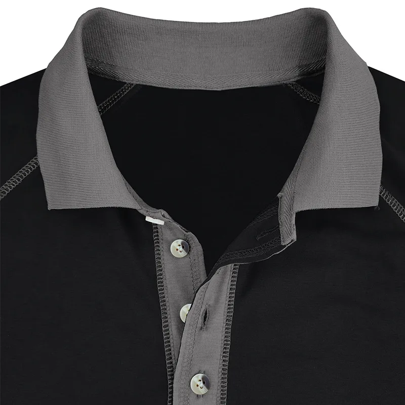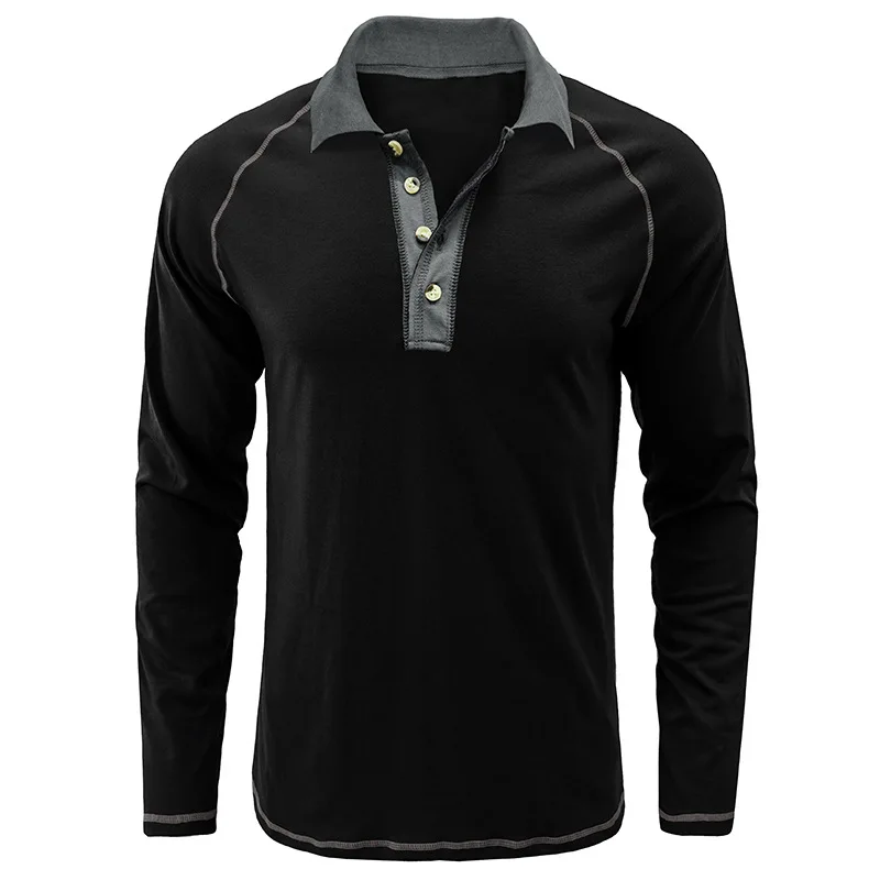 American Men's Autumn Long Sleeve Lapel Henley T-shirt POLO Basic Shirt Mens Tops