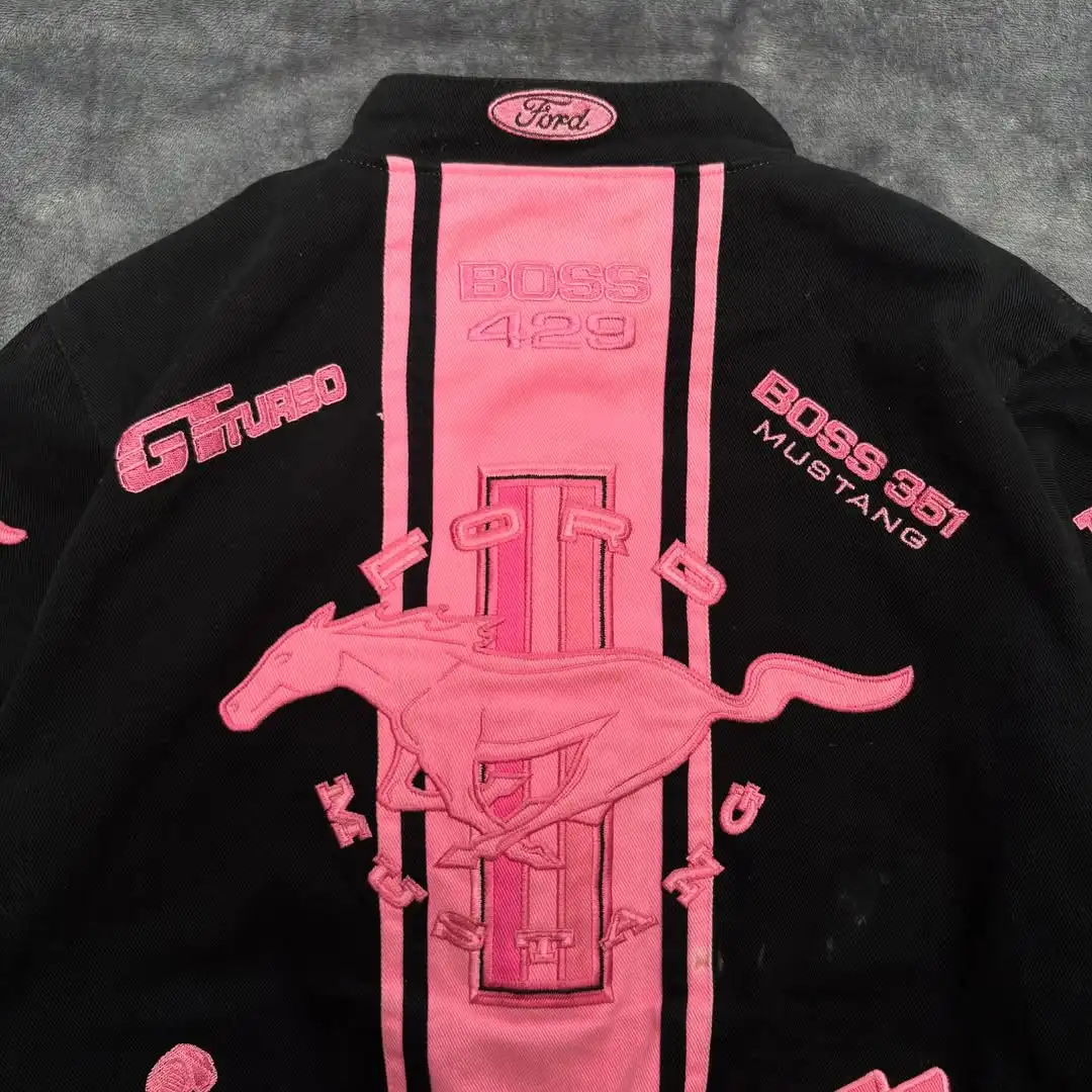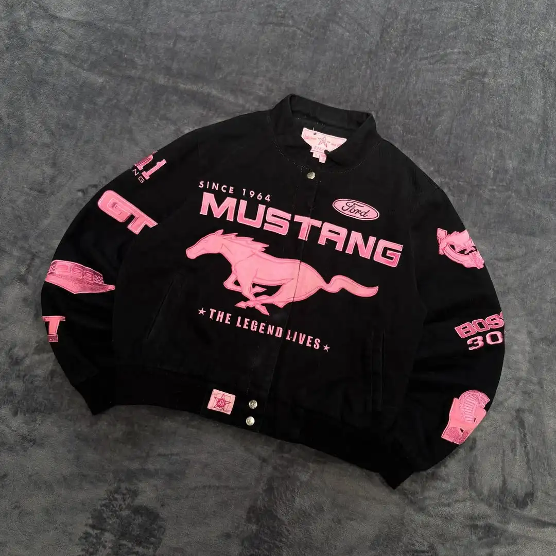 American Popular Simple Pink Horse Pattern Car Jacket for Women's Autumn and Winter Fashion Street Harajuku Y2K Bomber Jacket
