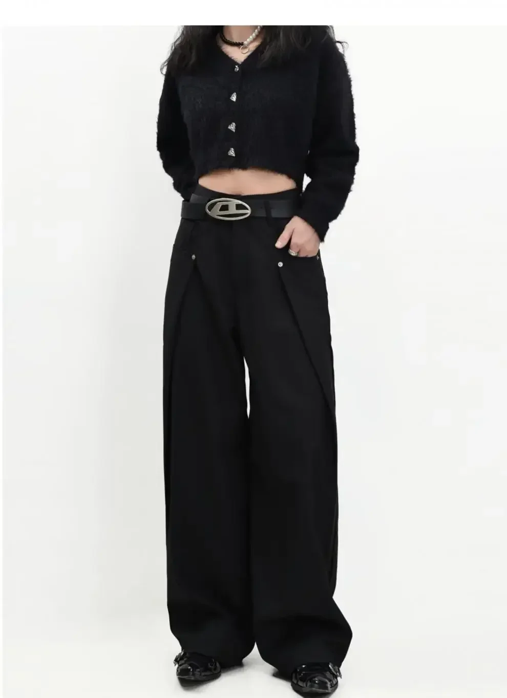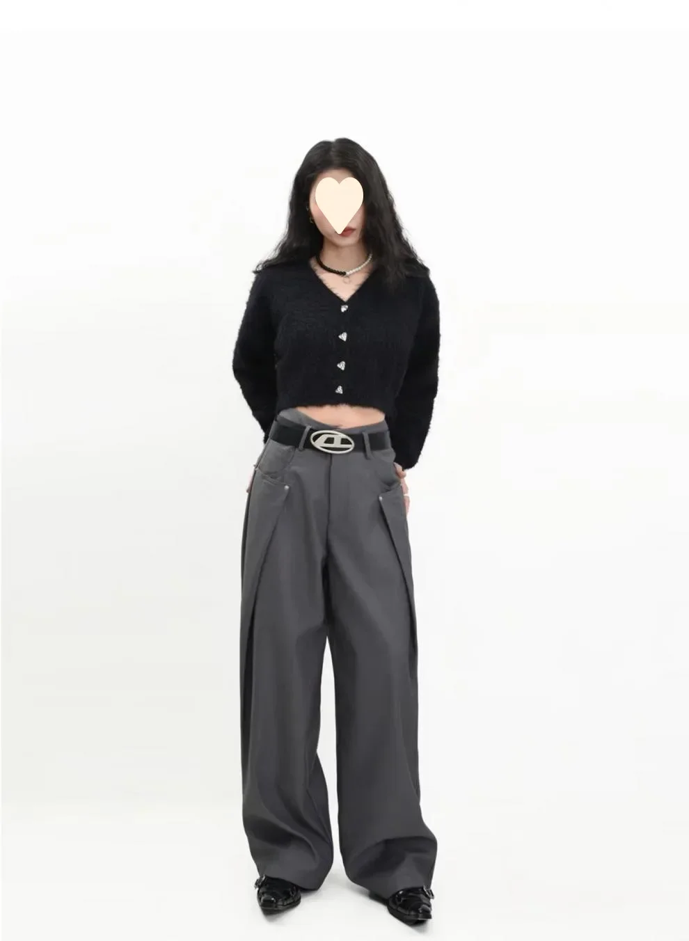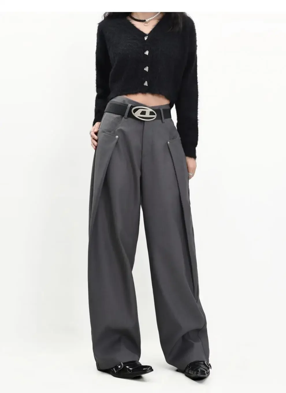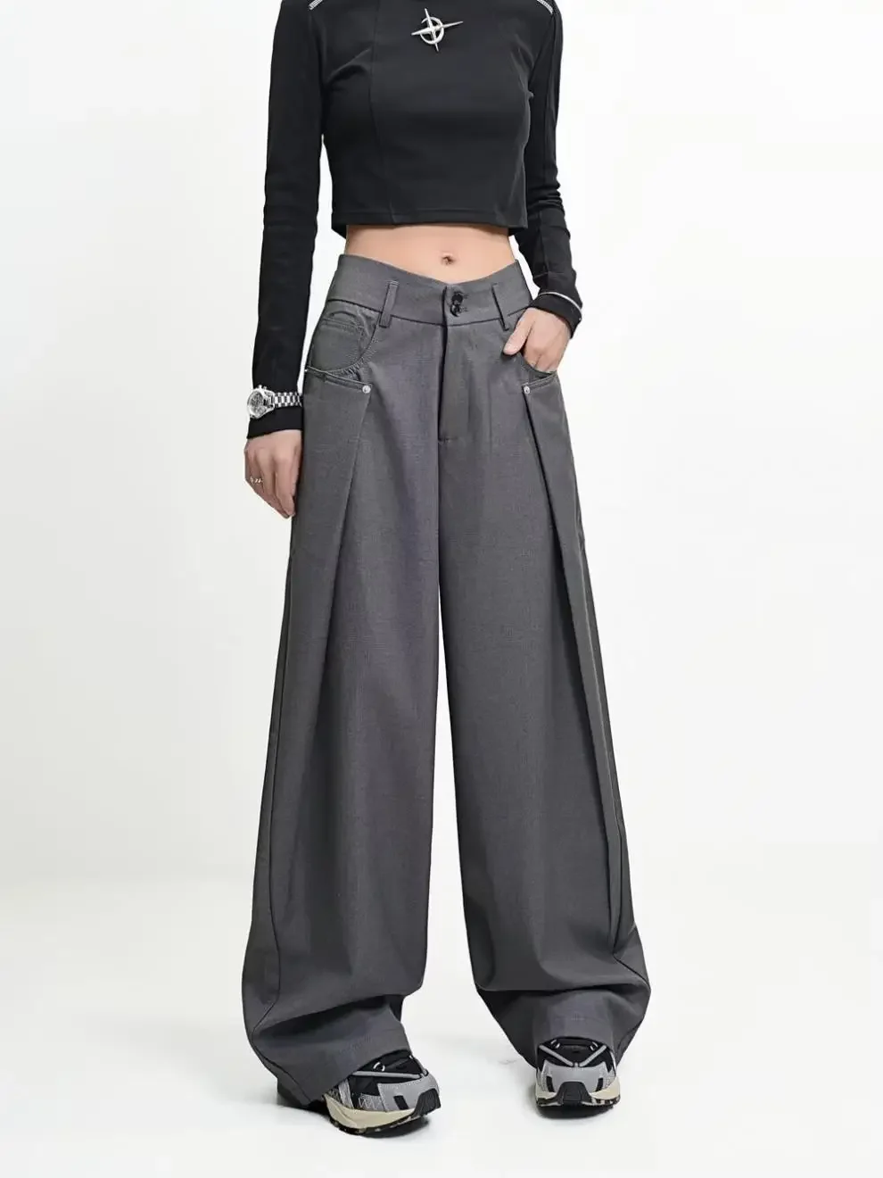 American Style High Waist Draped Suit Pants Women's Spring Autumn Loose Trendy Versatile Wide Leg Casual Floor Length Straight L