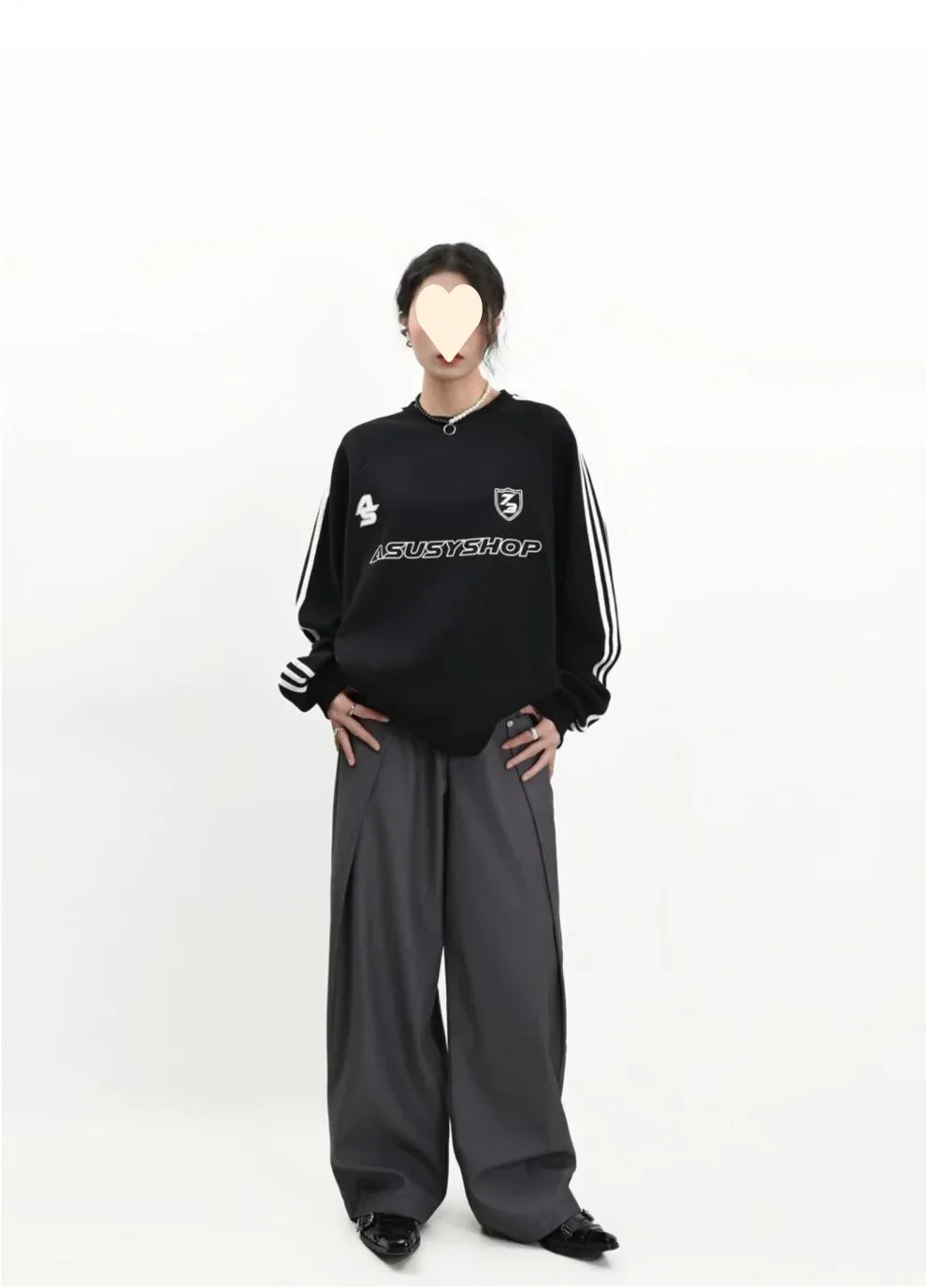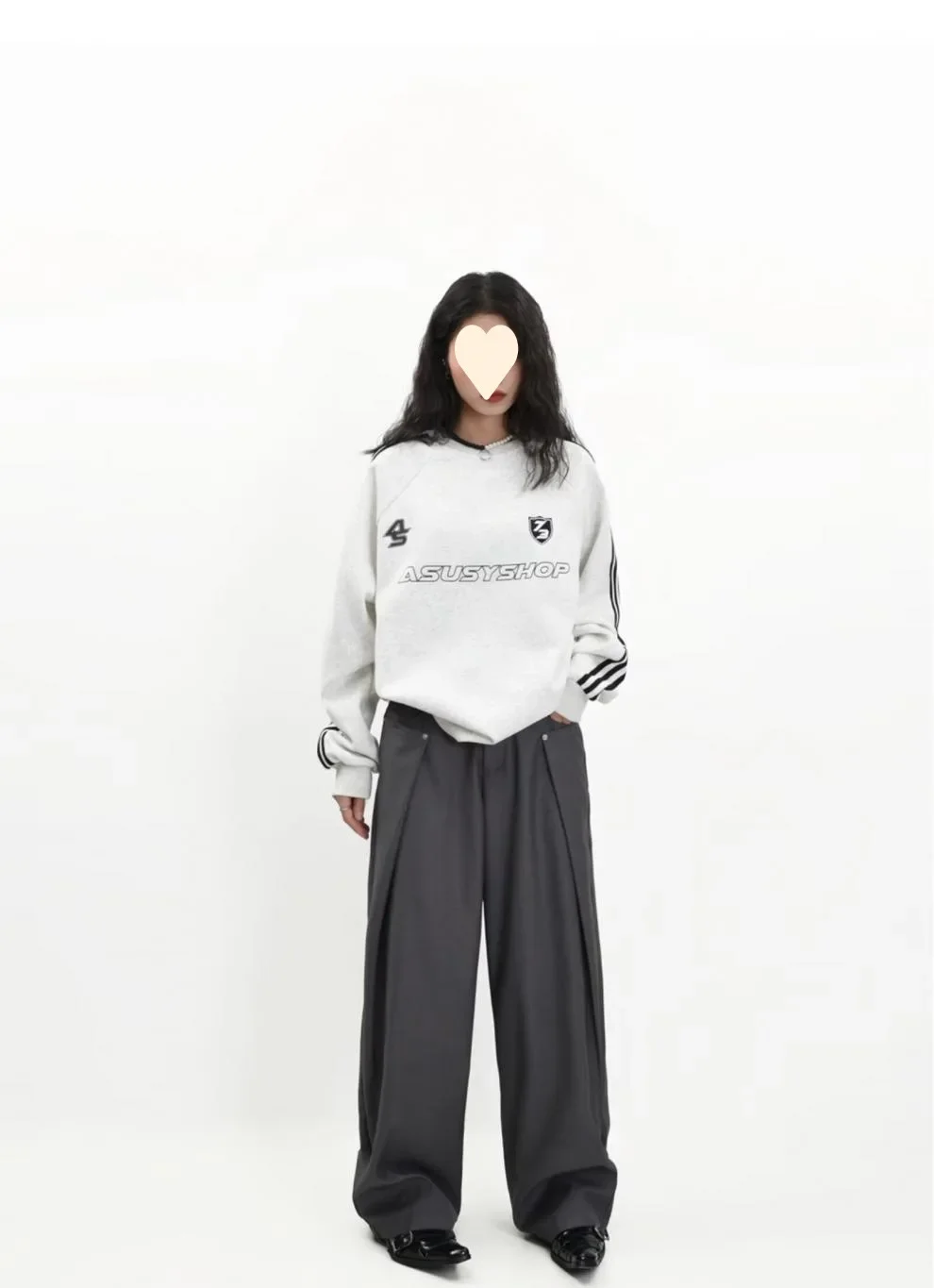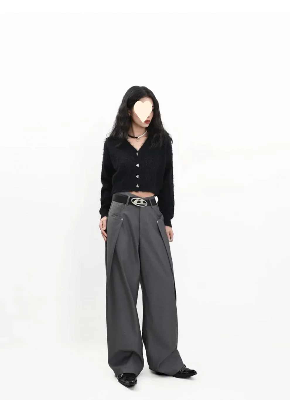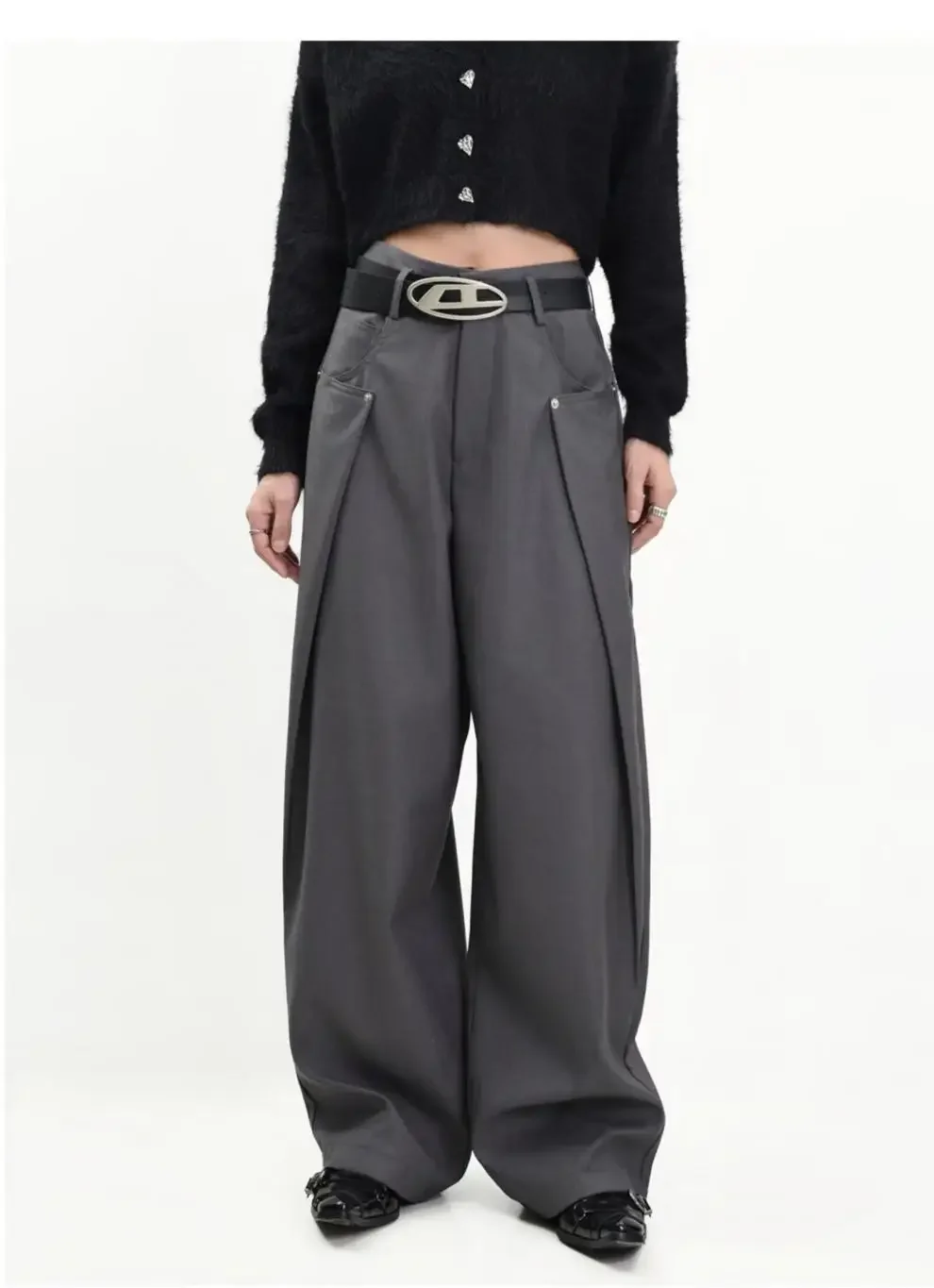 American Style High Waist Draped Suit Pants Women's Spring Autumn Loose Trendy Versatile Wide Leg Casual Floor Length Straight L