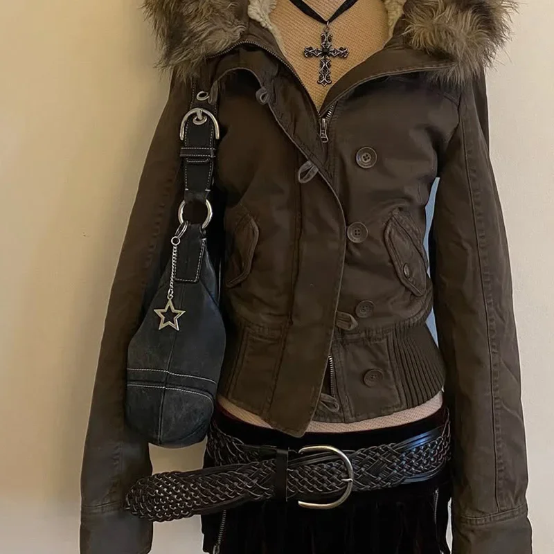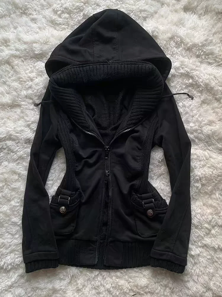 American style removable fur sweater hooded jacket Y2K women's fall and winter new retro casual slim waist waist short jacket