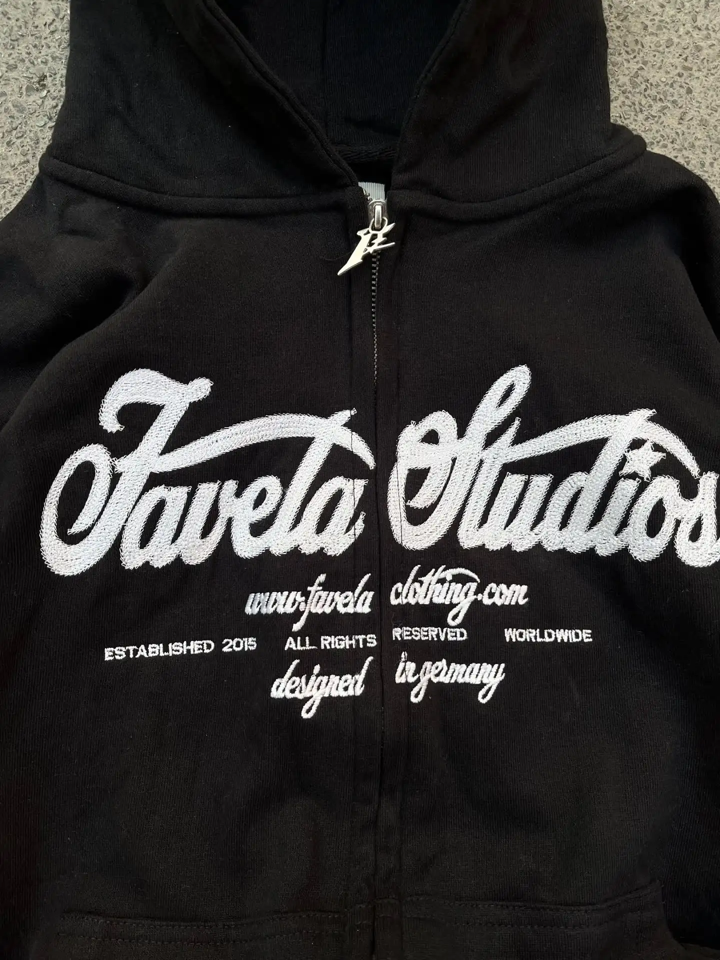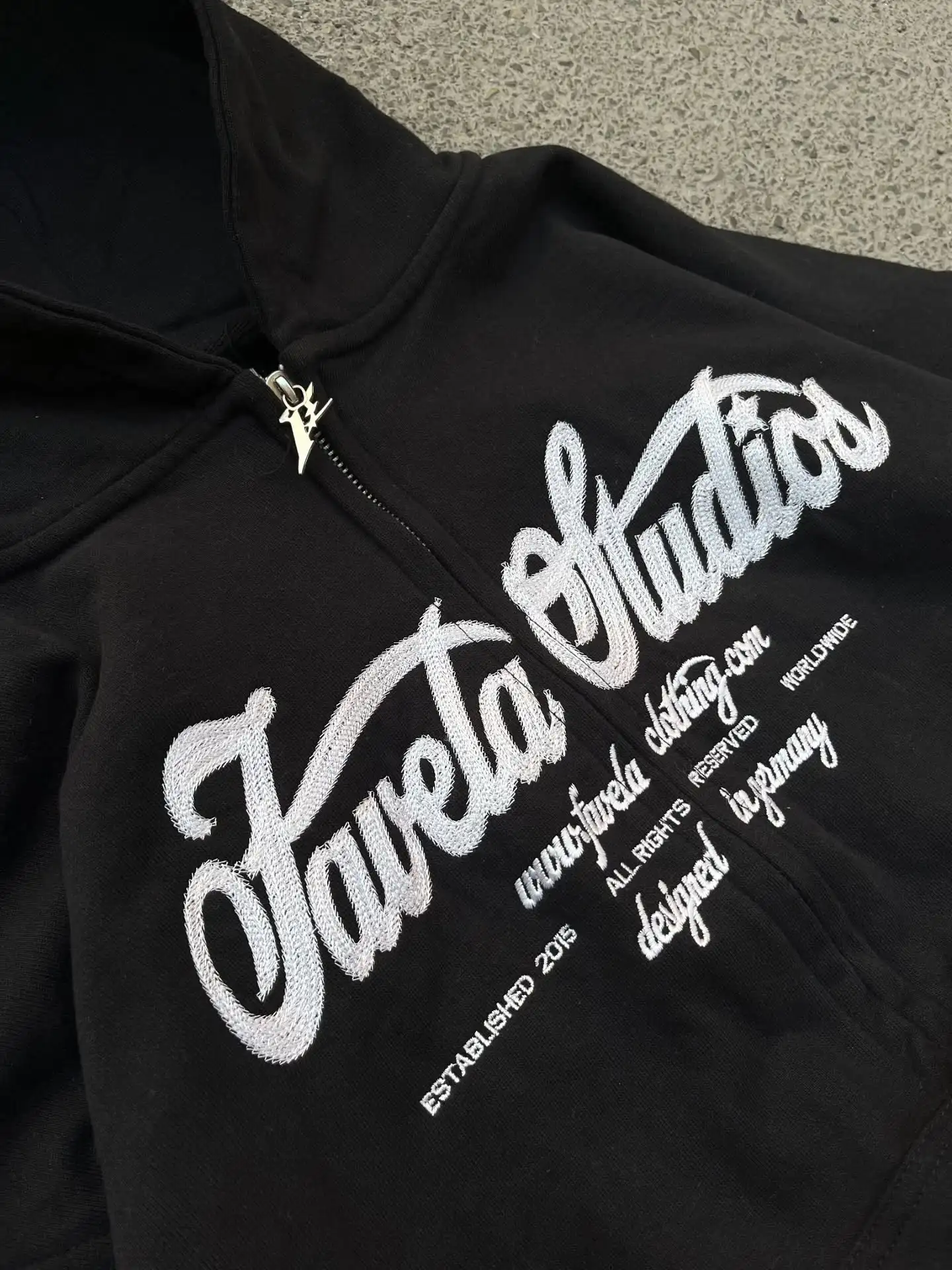 American style Y2K New Fashion Simple Black Oversized Zipper Hoodie Female Harajuku Gothic Casual Joker Couple Street Wear