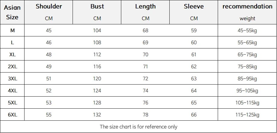 Kind reminder: Asian sizes are 1-2 sizes smaller than US/European sizes.