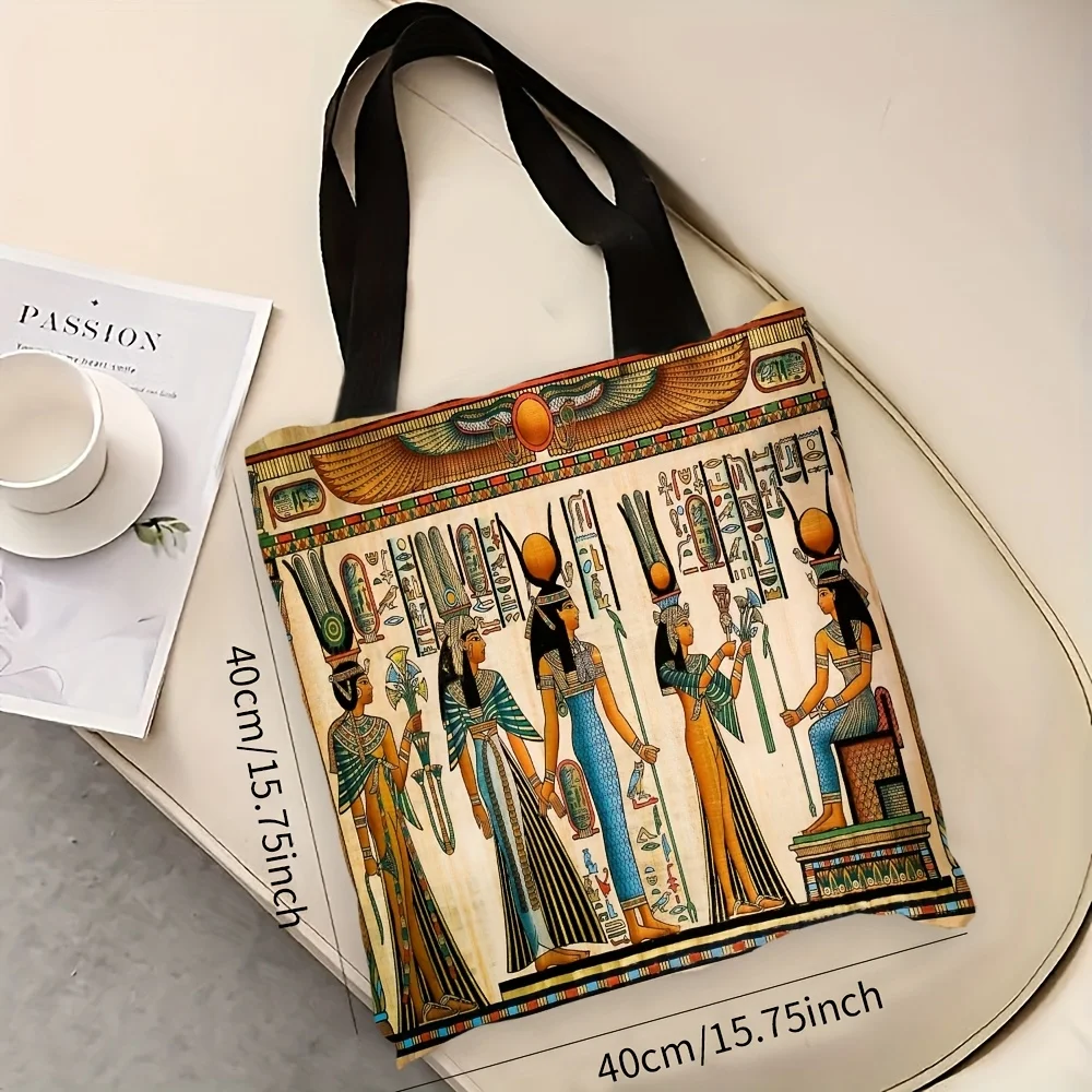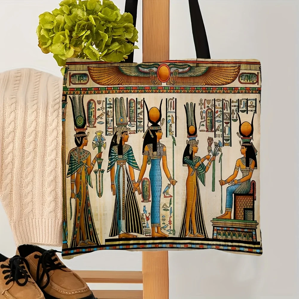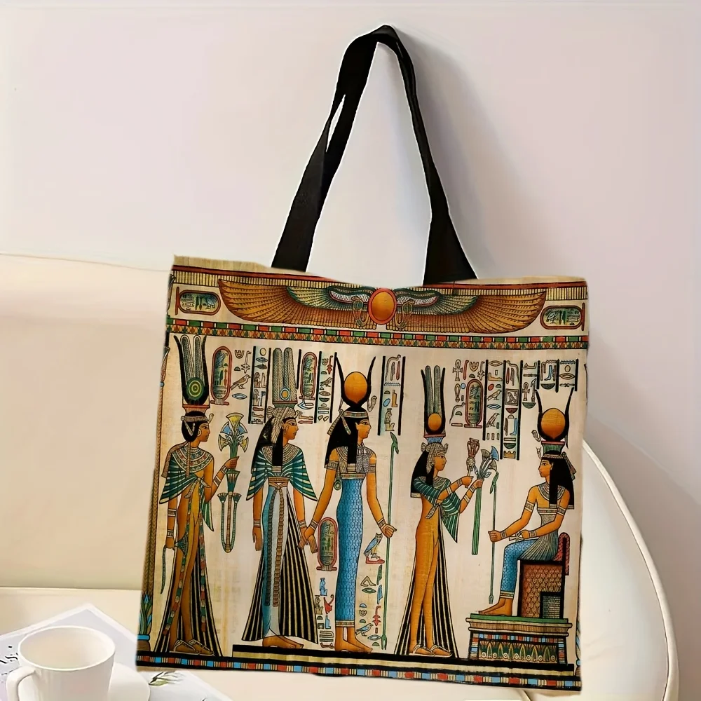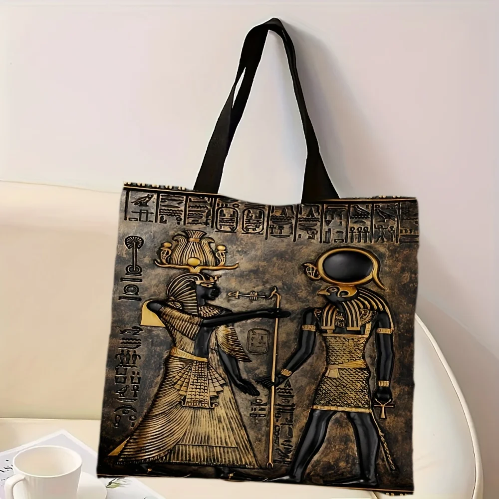 Ancient Egyptian Anubis Pharaoh Shopping Bags Vintage Casual Religious Theme Handbag Spacious Shoulder Bags, Lightweight Bag